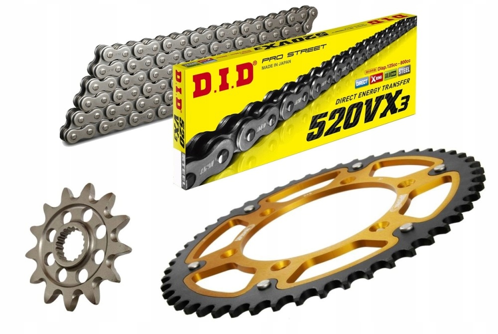 ланцюг: DID 520VX3 PROFESSIONAL (X-ring super reinforced) 118 ланок + кліпса