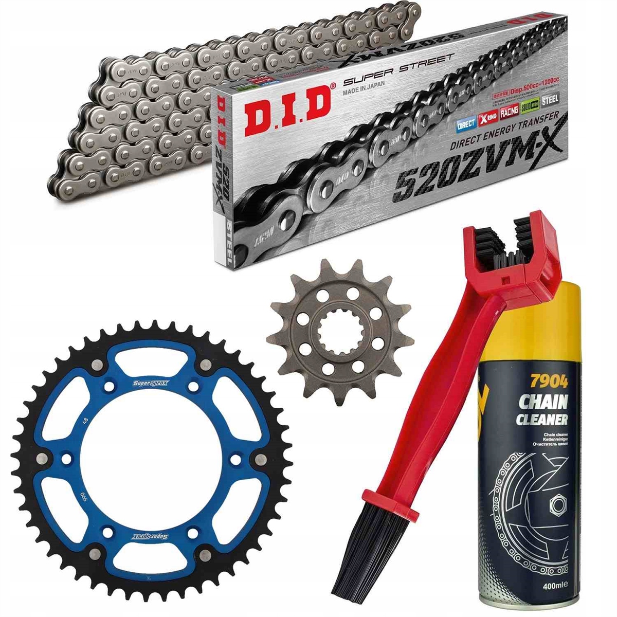 ланцюг: DID 520ZVM-X PROFESSIONAL (X-ring hyper-inforced) 118 ланок + кліпса