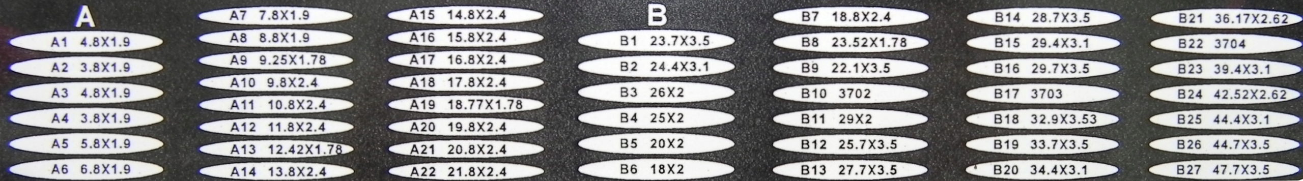 Розміри ущільнювальних кілець наведені на фото нижче: