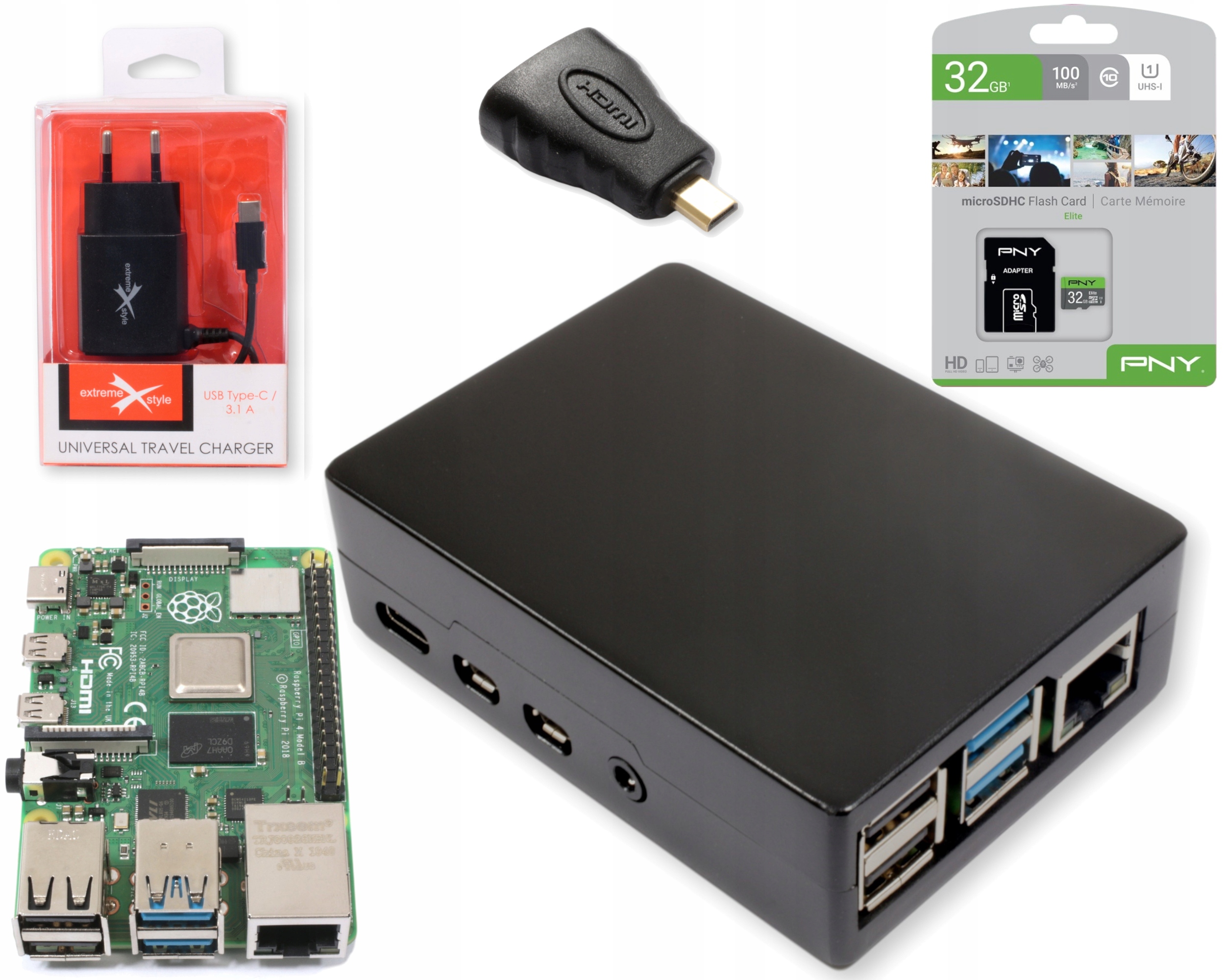 Комплект Raspberry Pi 4B з пасивним охолодженням 8 ГБ оперативної пам’яті, блок живлення 32 ГБ USD