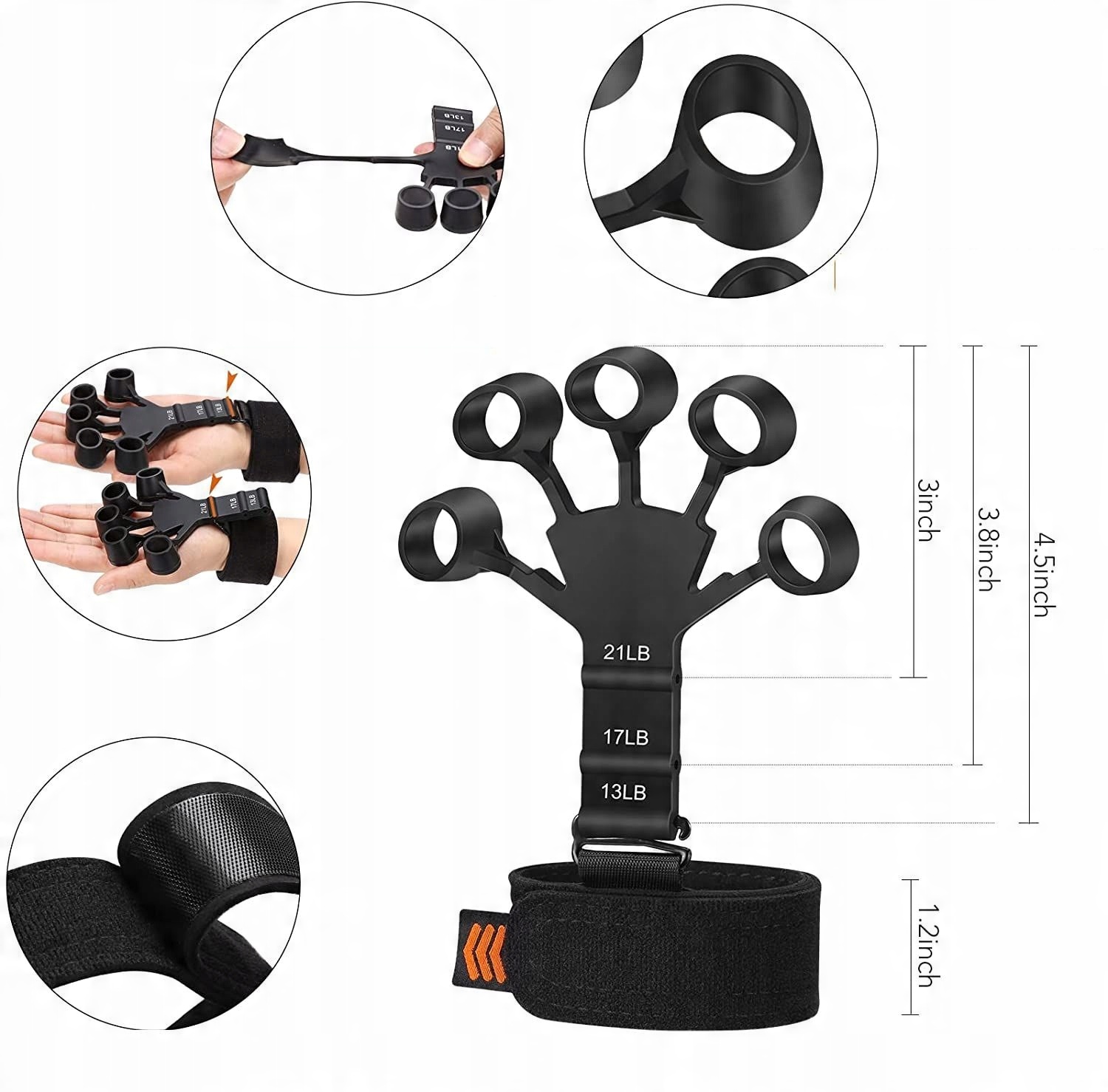 - Тренажер для пальців має 6 рівнів опору. Змініть положення гачка, щоб відрегулювати значення опору, 6 рівнів опору (важкий чорний: 13 фунтів, 17 фунтів, 21 фунт і світло-сірий: 6,6 фунтів, 8,8 фунтів, 11 фунтів), Підходить від початківця до просунутого. Міцна та ергономічна форма, яка підходить для робочих звичок рук і пальців