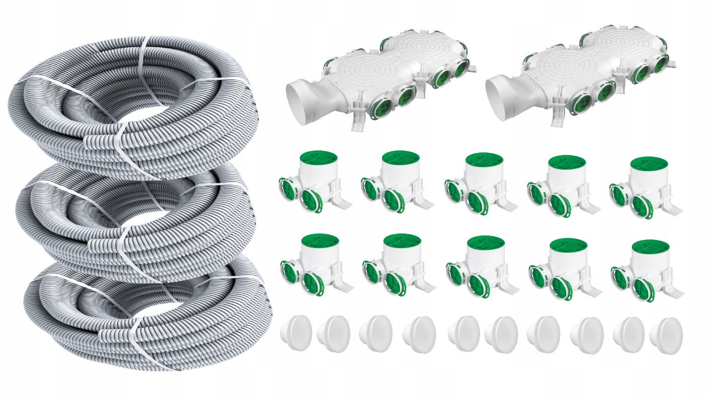 Вентиляційні аксесуари призначені для монтажу з найпопулярнішою системою розподілу вентиляції на основі гофрованої двостінної труби Ø75.