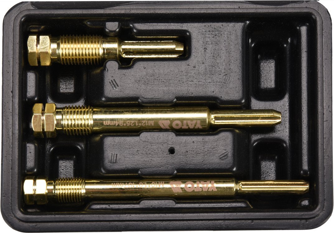 Професійний набір із трьох розгорток для чищення гнізд свічок розжарювання, які використовуються перед установкою нових свічок у головки блоку циліндрів.