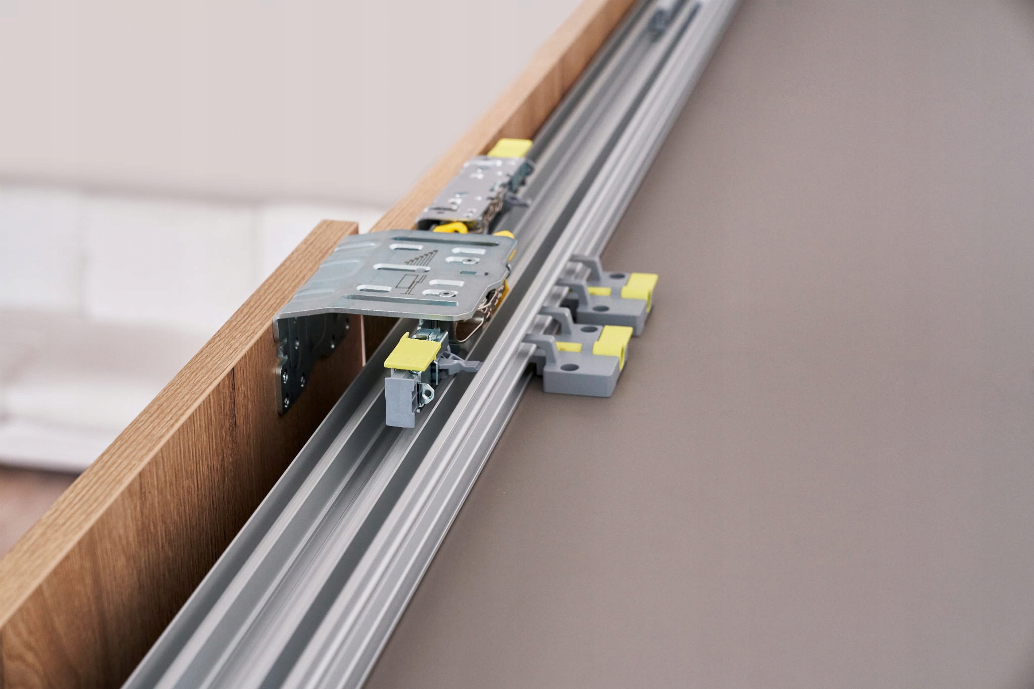 Система TopLine XL від Hettich дозволяє створювати гардеробні з унікальним дизайном. Він встановлює нові стандарти щодо комфорту використання та простого та безпечного встановлення. Шафа може бути майже до стелі. Мінімальний відстань між дверима та стелею становить 45 мм. Відкривається легко, закривається м’яко, а робота практично безшумна. Ідеальне регулювання накладки без інструментів із закритими дверцятами з миттєвим результатом. Просте регулювання висоти спереду при закритих дверях або збоку, на невеликій відстані від стелі. Амортізація в напрямках відчинення та закривання гальмує двері тихо та м'яко. Він приводить двері в рух з надзвичайною легкістю завдяки гнучкості амортизатора, який має достатній запас для великої ваги дверей. Навішуємо двері на верхній профіль, а нижні елементи вдавлюємо без використання інструментів. Крім того, двері можна поставити на підлогу, оскільки напрямні елементи автоматично рухаються вгору. Перекриття фасадів може бути повним або частковим.