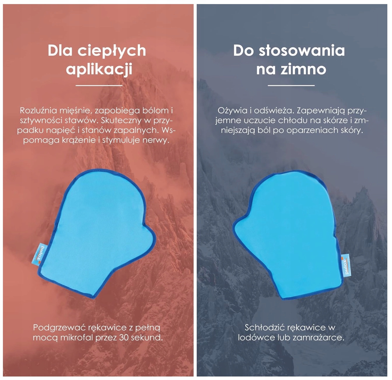 ► Ці універсальні рукавички призначені для холодової та теплової терапії, яка ефективна, серед іншого: при лікуванні ревматичних захворювань, болю в суглобах, порушень кровообігу.