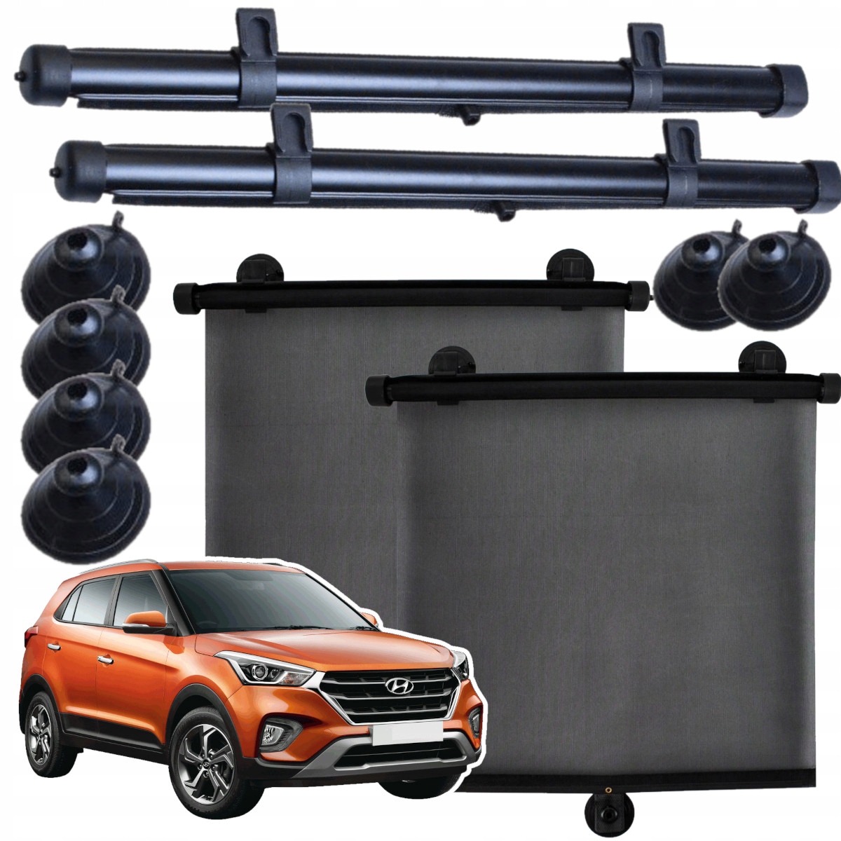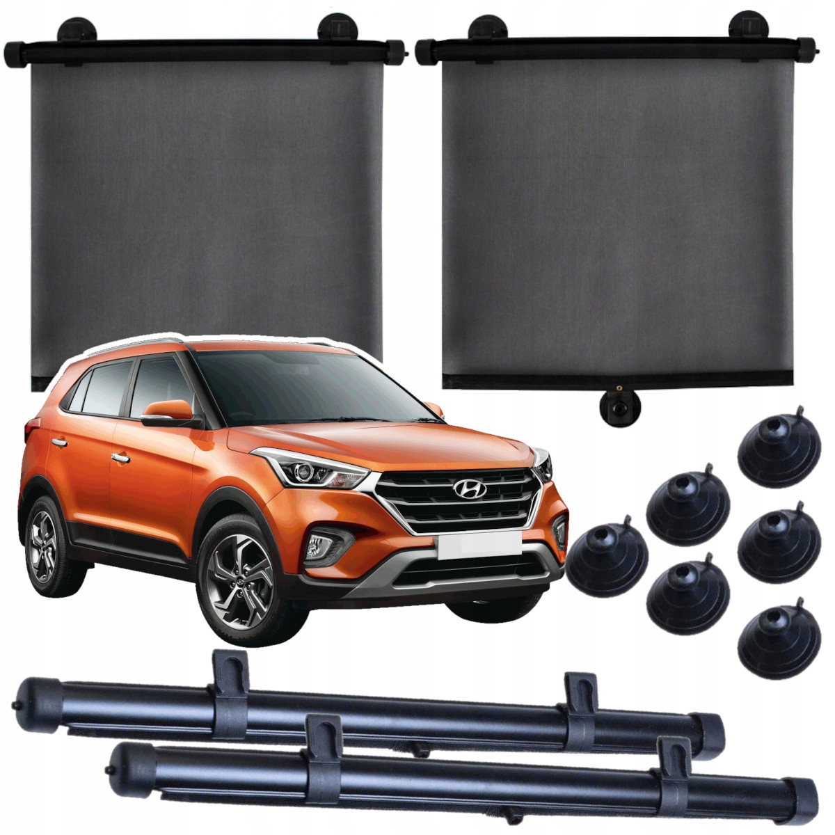 Сонцезахисні шторки захищають пасажирів від надмірного сонячного випромінювання та значно зменшують нагрівання салону автомобіля. Набір присосок і гачків дозволяє легко встановити шторку на лобове скло автомобіля.
