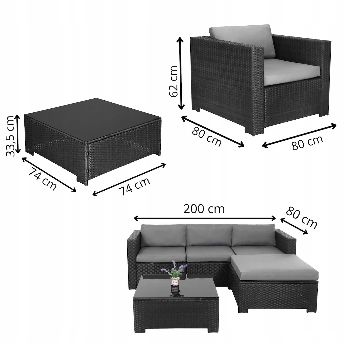- Матеріал : техноротанг, темне загартоване скло, поліестер/ПП