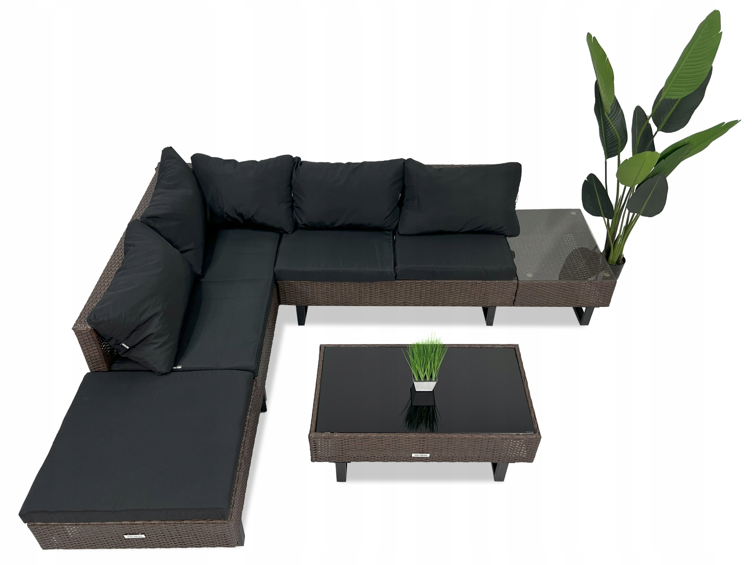 Набір складається з 3 елементів: столика та 2 диванів з опціями для встановлення додаткового столика або пуфа з обох сторін. Сидіння мають подушки товщиною 5 см із водонепроникними знімними чохлами, які можна легко зняти для прання, і в той же час вам не доведеться турбуватися про дощову погоду.