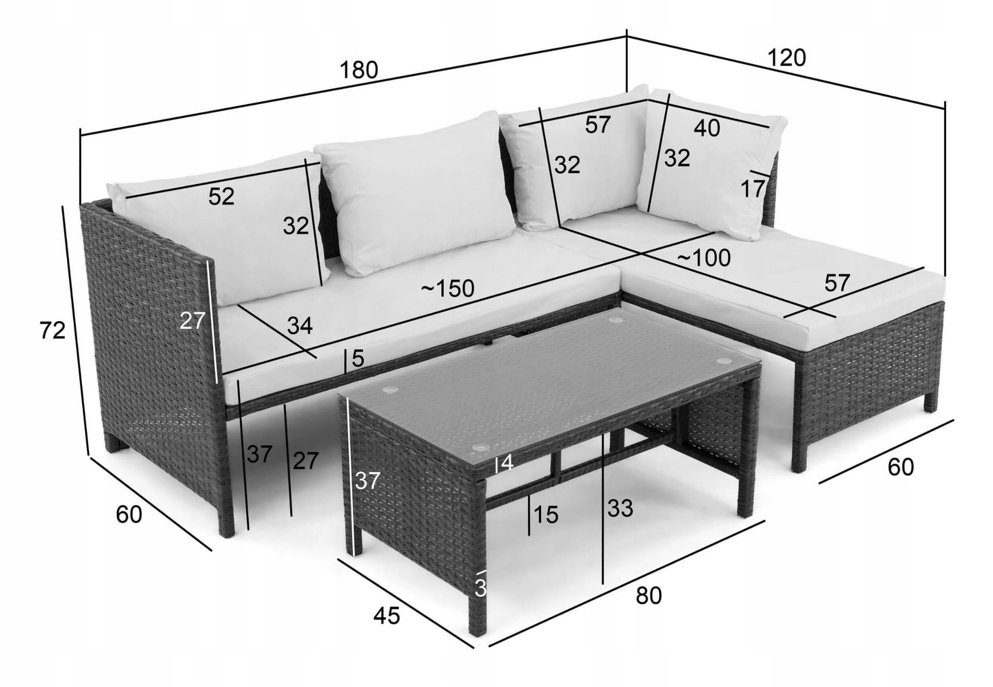 - Комплект складається з кутового дивана та столика