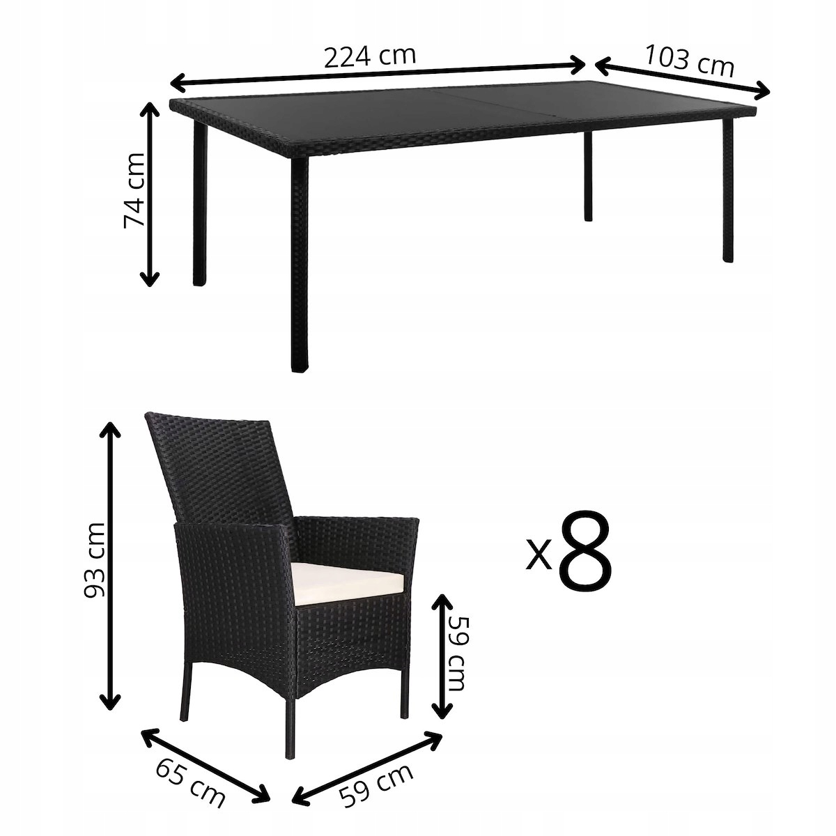 КОМПЛЕКТ САДОВИХ МЕБЛІВ СТІЛ ТЕХНОРАТАН + 8 ЧОРНИХ СТІЛЬЦІВ