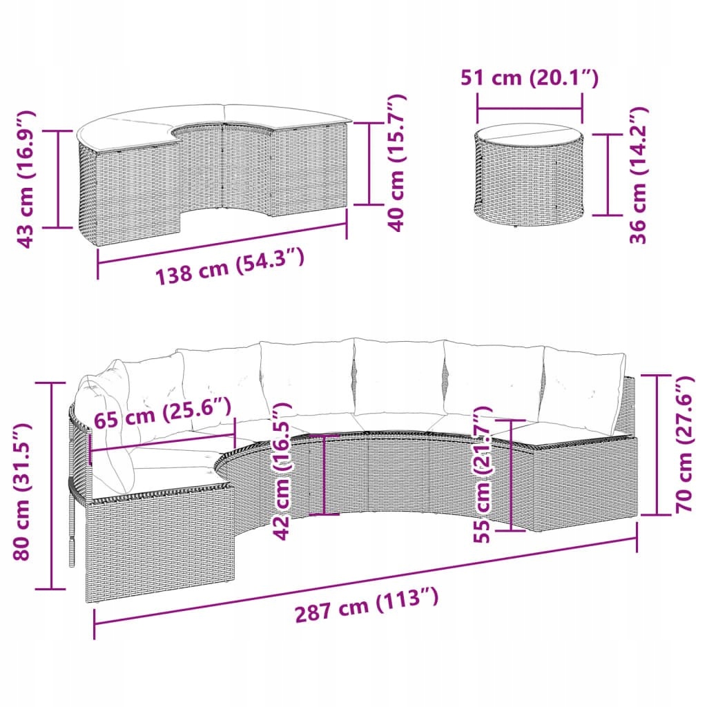 Цей напівкруглий диван садових меблів стане фантастичним доповненням до вашого саду, тераси чи внутрішнього дворика, створюючи комфортний і привабливий простір для зустрічі з родиною та друзями та відпочинку на свіжому повітрі.