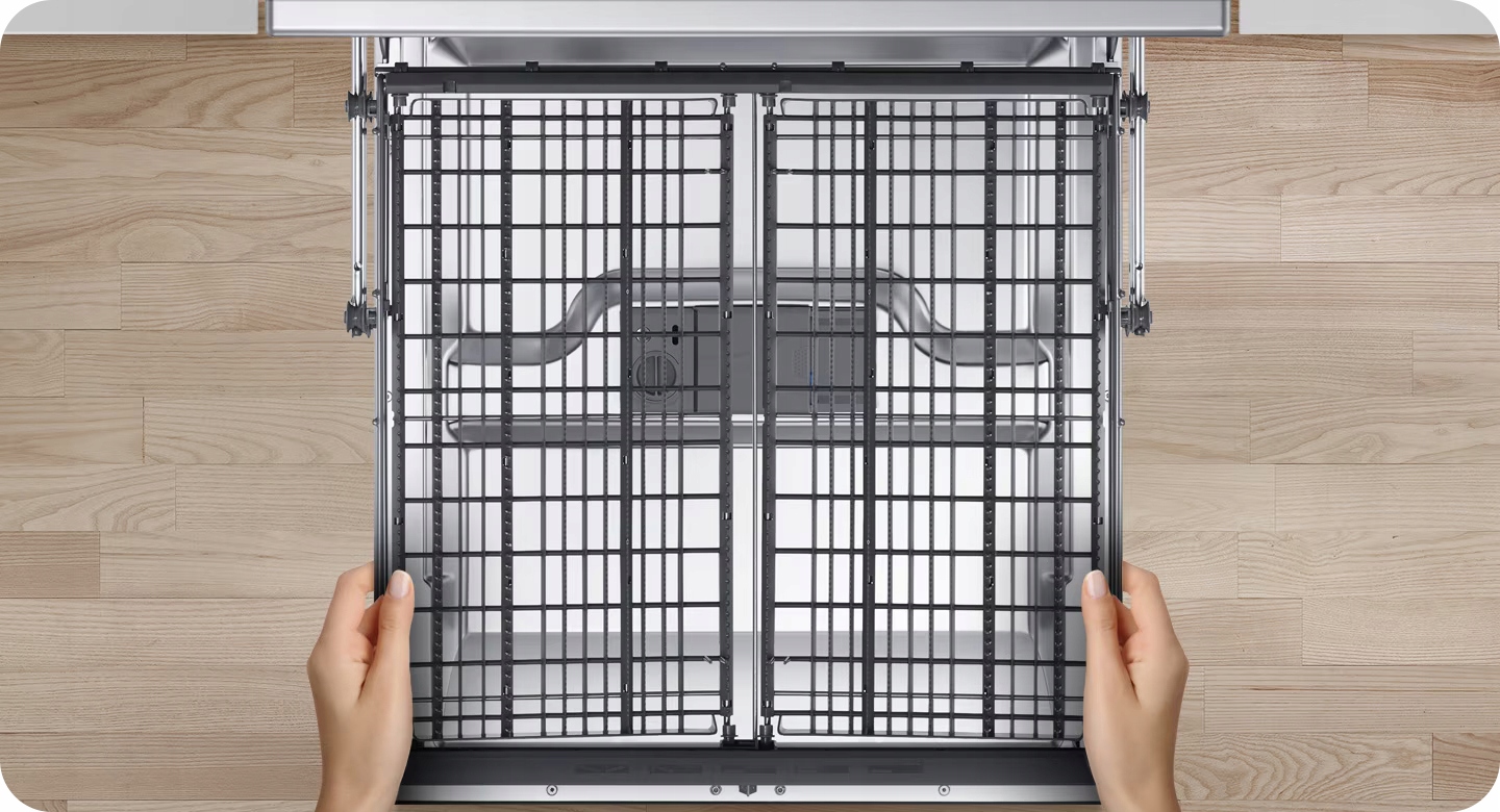 Мийте столові прибори та великі кухонні аксесуари зручніше за допомогою третього кошика. Легко та швидко розмістіть посуд у цьому спеціальному місці та легко діставайте його. У порівнянні з моделями Samsung, оснащеними двома кошиками, це рішення забезпечує більше місця в решті відділення посудомийної машини.