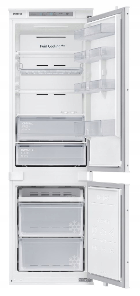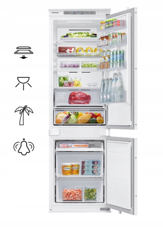 Вбудований Samsung в холодильнику розроблено з функціональними рішеннями, які полегшать ваше щоденне використання. Ви можете легко помістити в нього великий посуд з їжею і високі пляшки або картонні коробки. Ви матимете вільний доступ до продуктів, а якщо ви забудете закрити дверцята, пристрій нагадає вам про це.