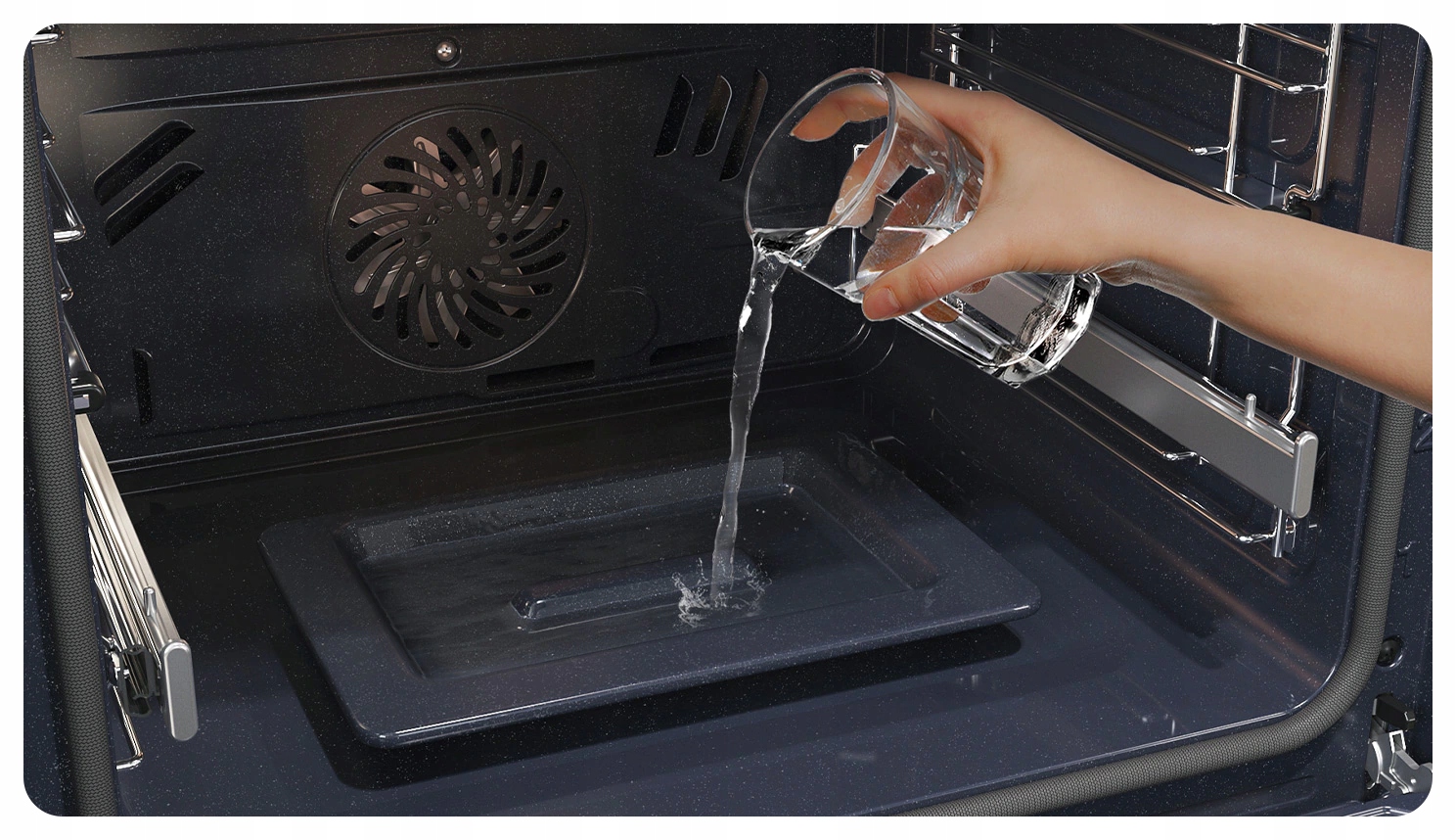 Функція Natural Steam підтримує процес випікання за допомогою пари. З води в спеціальній посудині отримують пару, яка під дією температури випаровується і підвищує соковитість страви.
