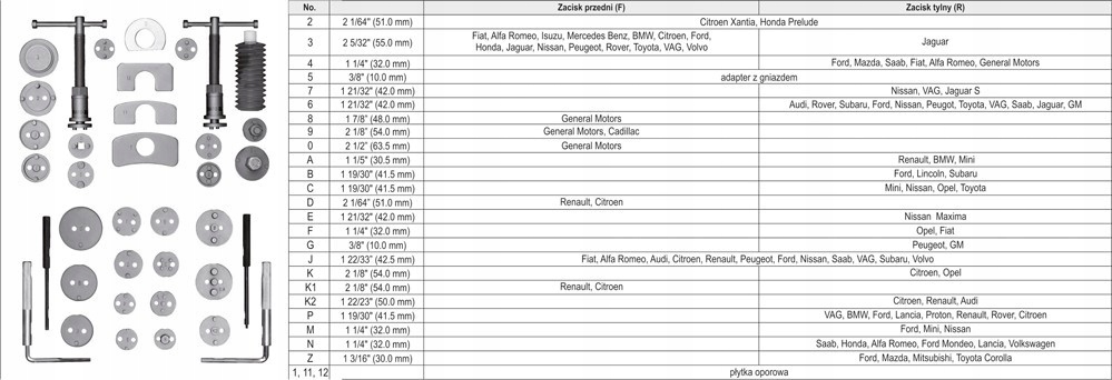 Професійний набір сепараторів для гальмівних супортів. Пристрій складається з двох гвинтових пресів - правого і лівого - і комплекту пластин, адаптованих до більшості моделей автомобілів. Набір містить 35 елементів. Все це помістили в добротну валізу.