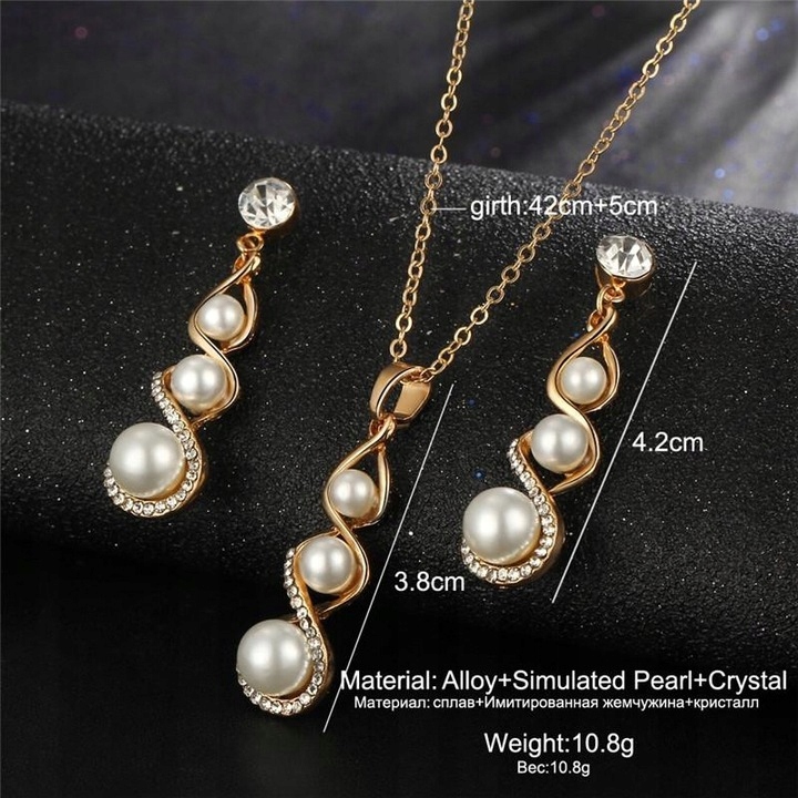 Тип предмета: набір сережки, намисто, золото, біле, перли, циркони. Ідеальний подарунок на День святого Валентина, жіночий день, день народження, весілля.