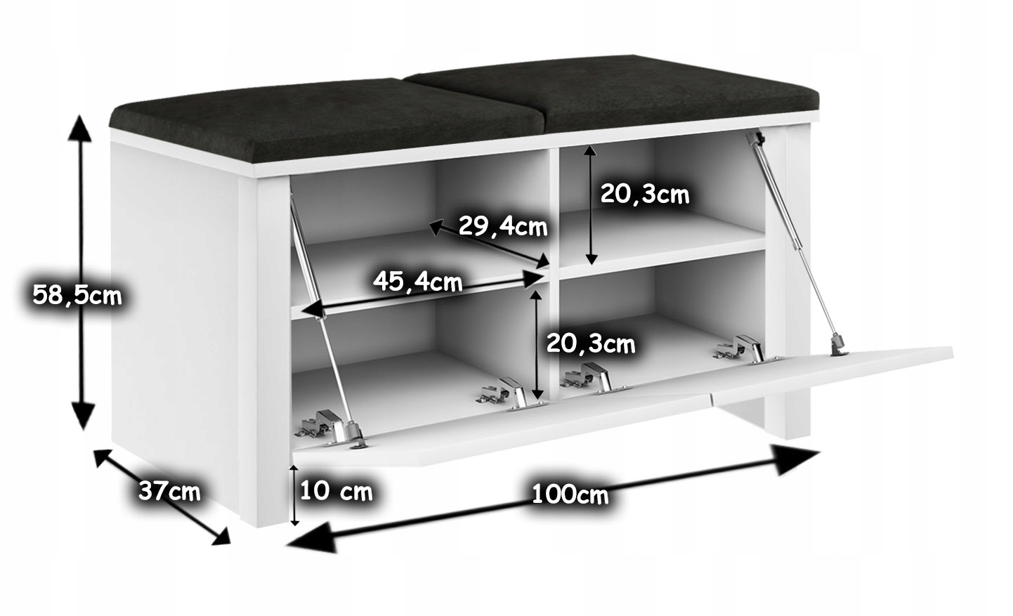 Тафка для взуття "SCANDIC SC-100" - це меблі в сучасному вигляді, без ручок . Шафа має ширину 100 см, глибину 37 см і висоту 58,5 см. Це один із модулів, який можна використовувати для створення індивідуальної передпокої. Відстань між шафою та підлогою становить 10 см, завдяки чому ви можете зручно розмістити під шафою іншу пару взуття, отримуючи додатковий простір для зберігання повсякденного взуття.
