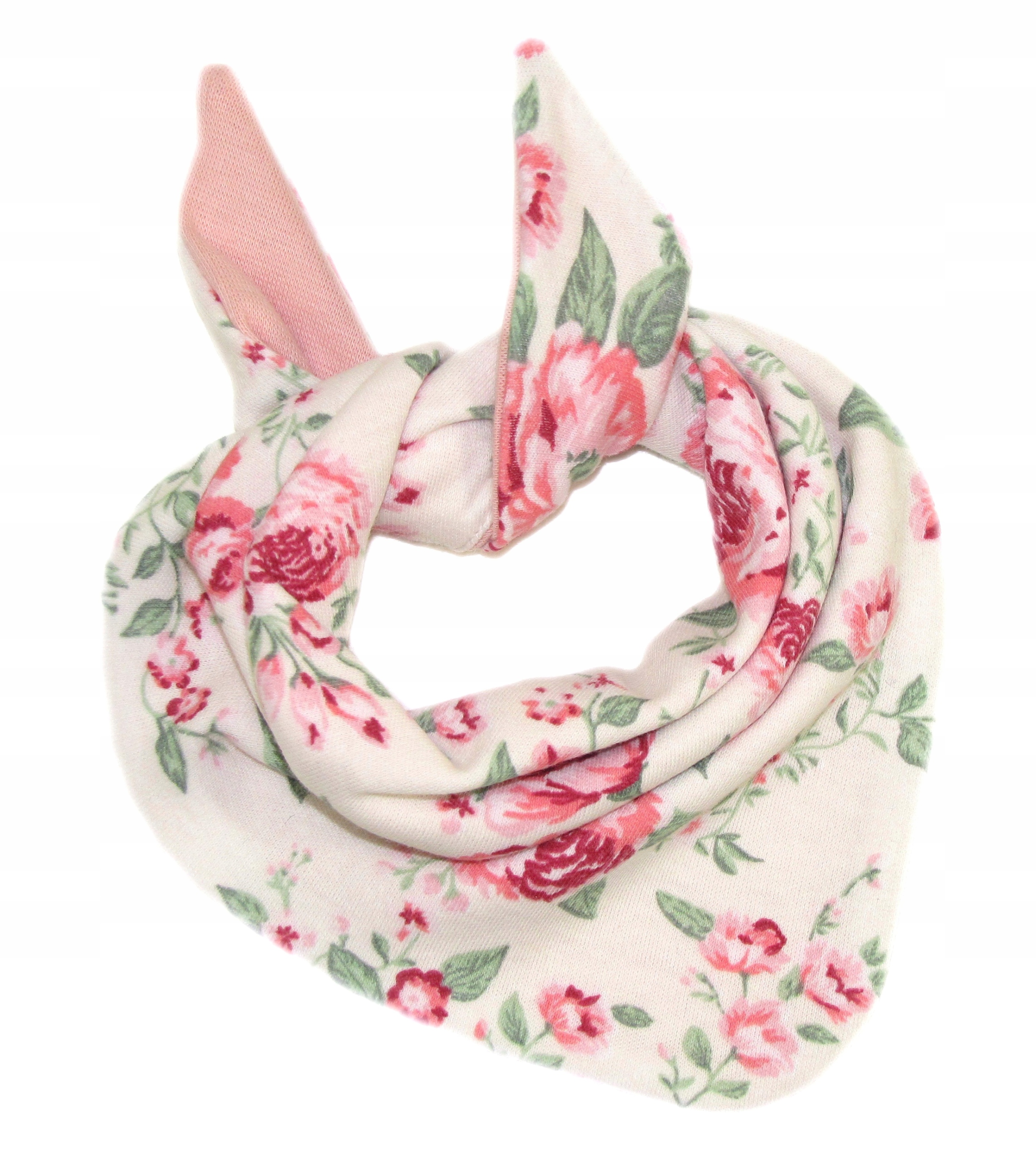 - двошаровий шарф, один бік пудрово-рожевого кольору, інший — із бавовняних троянд