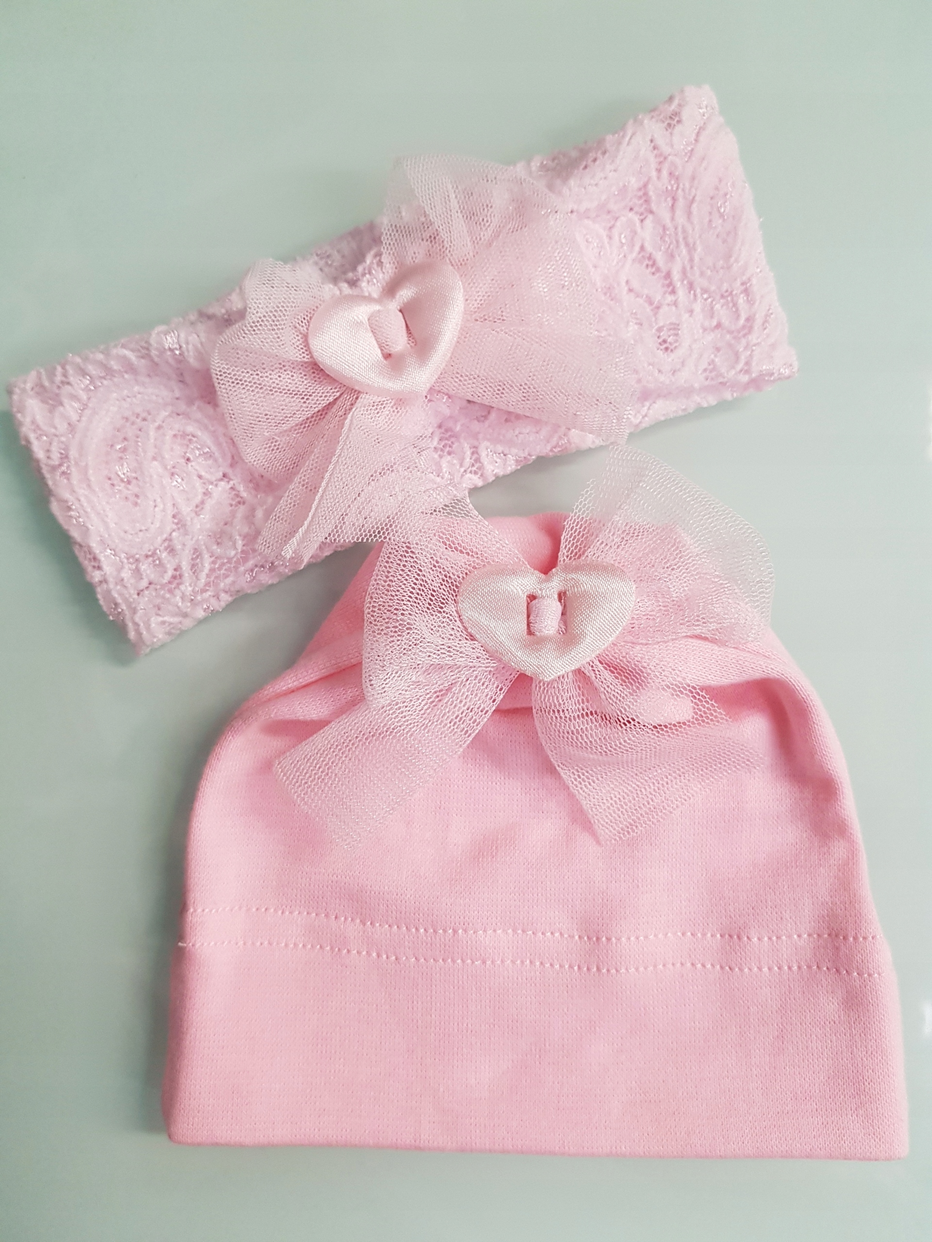 КОМПЛЕКТ ШАПКА + ПОВ'ЯЗКА БАНТИК ИЗ ТЮЛЮ 0-12 МІС