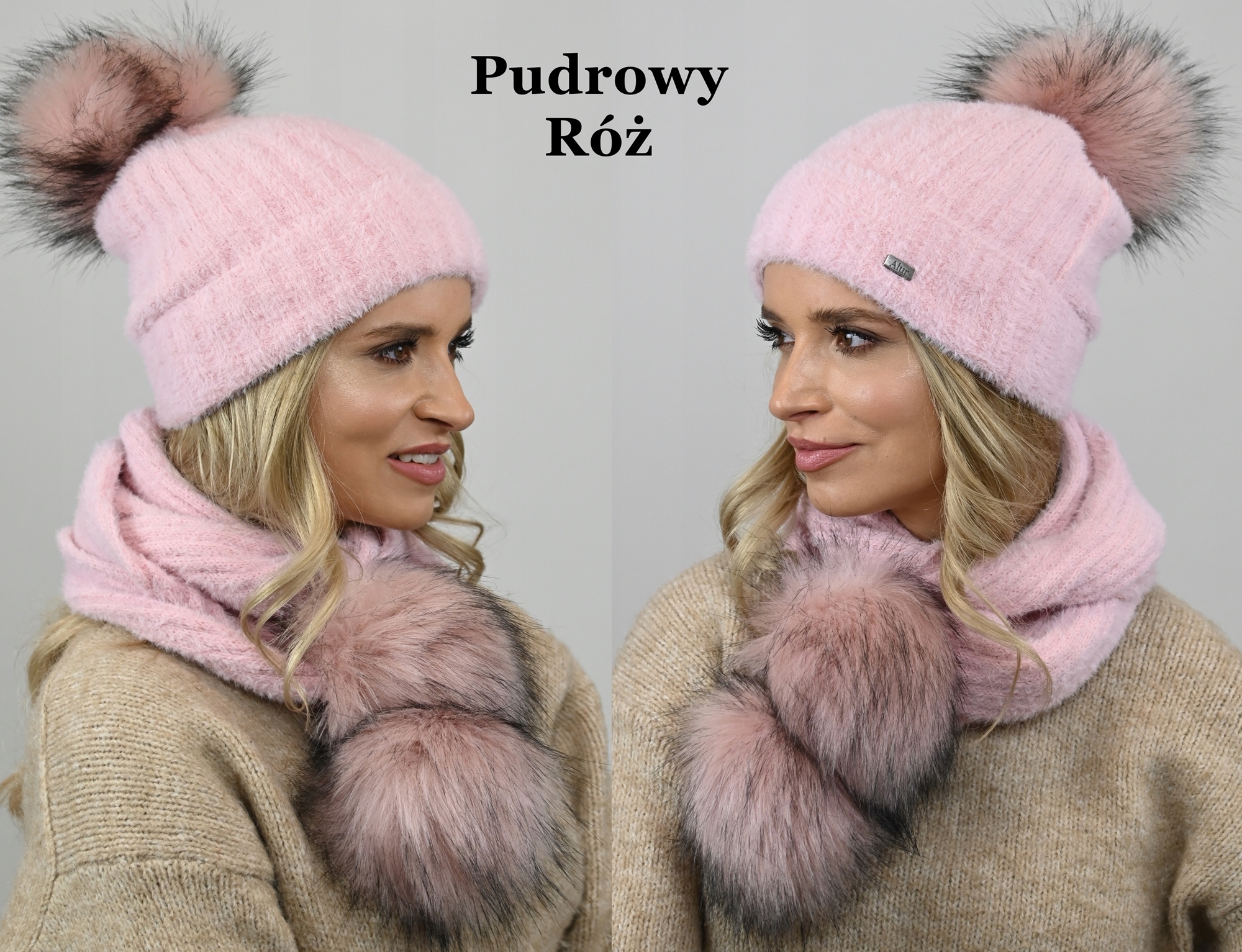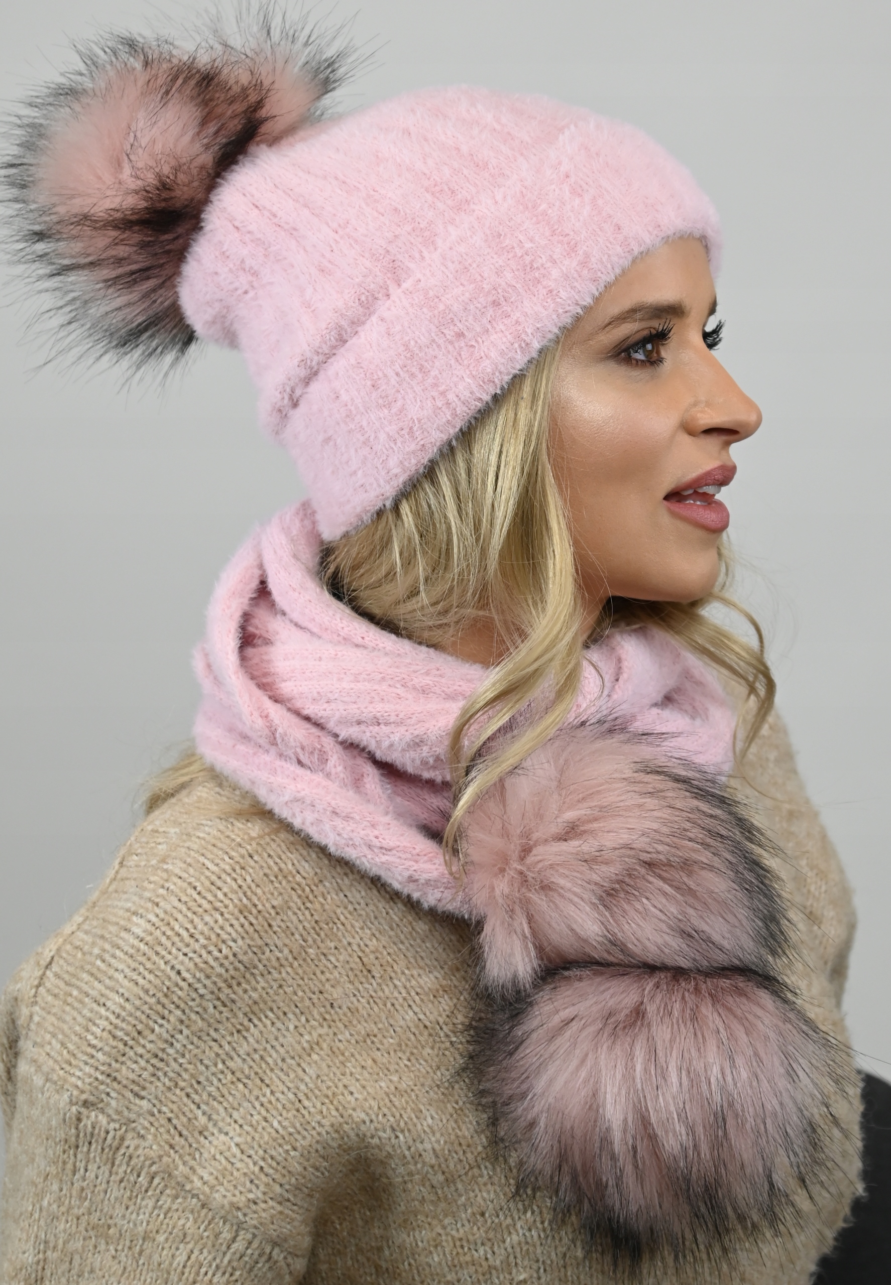 Комплект: шапка + шарф помпони Alpaca Pink Al4