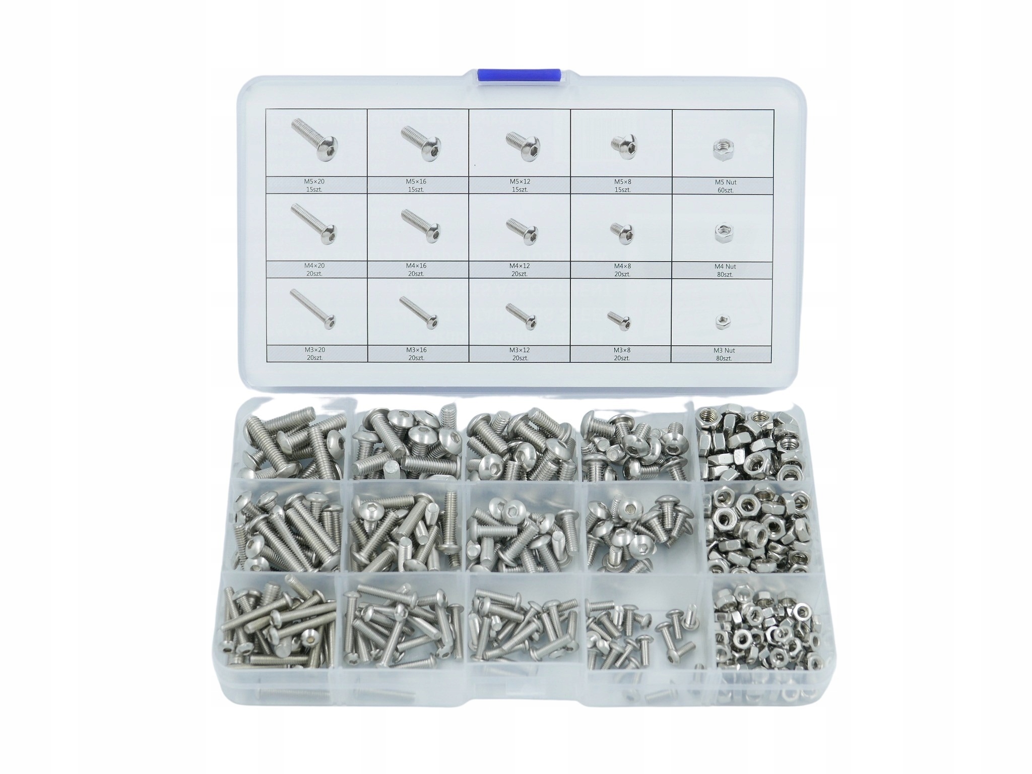 Набір містить широкий вибір шестигранних гвинтів і гайок (шестигранних ключів) у практичному органайзері.