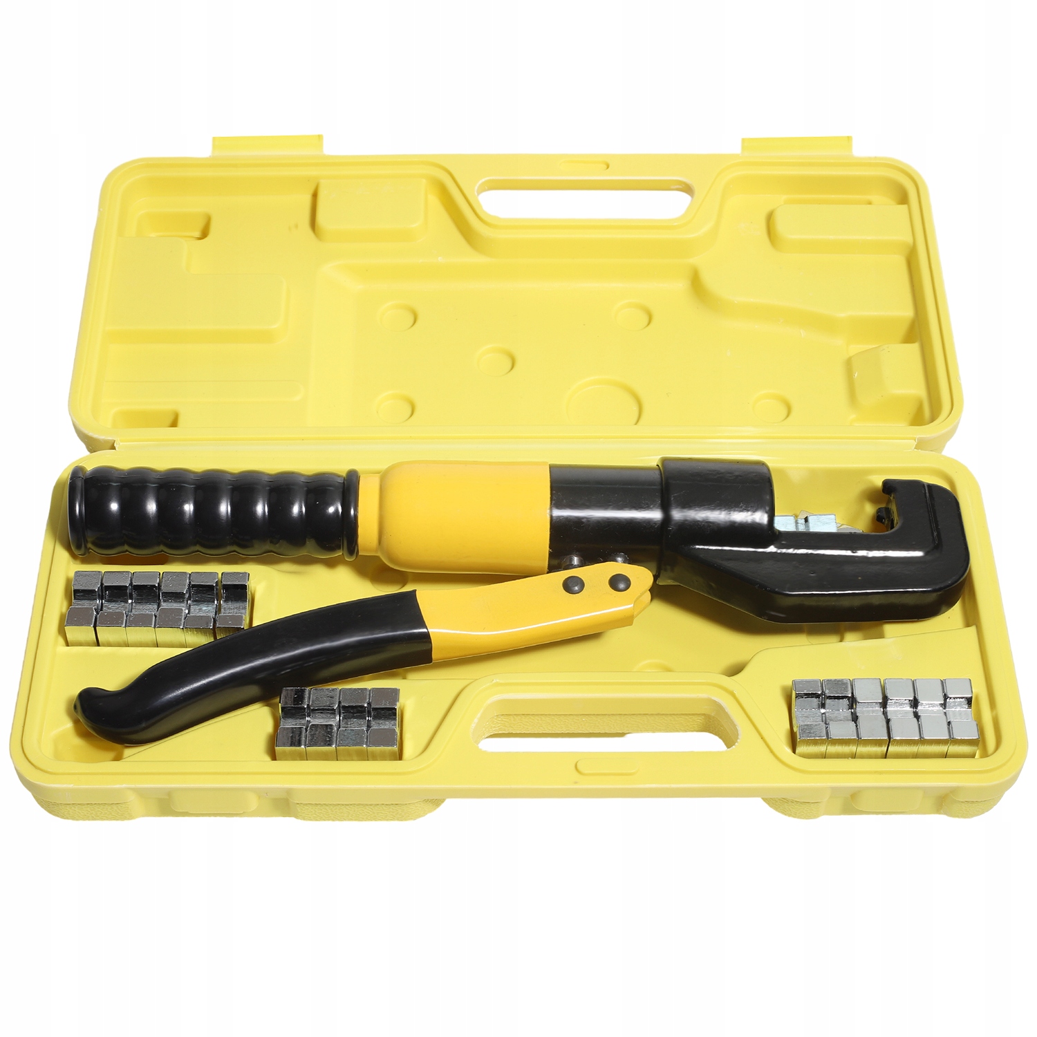 Гідравлічний обжимний інструмент для кріплення важких кінцівок і силових кабелів. Ідеально підходить для акумуляторів, клем, зварювальних, силових та електричних кабелів тощо. Його головку можна вільно повертати на 360°, щоб отримати перевагу під час роботи у вузькому просторі. У набір входить міцна жовта пластикова коробка, яку зручно носити та зберігати.