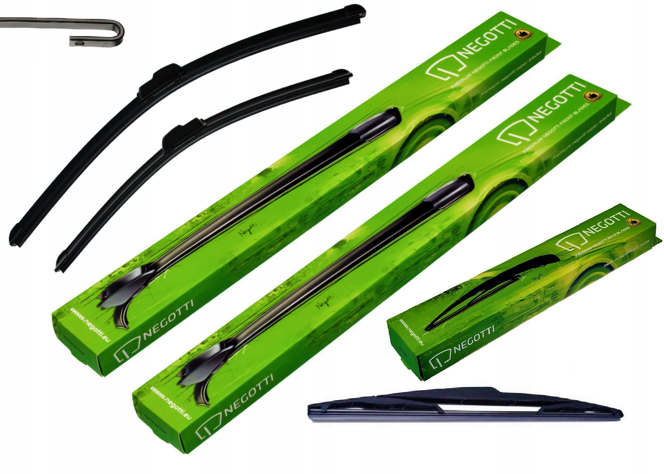 Плоскі щітки склоочисника Negotti. У набір входить набір спеціальних автомобільних склоочисників (3 шт., передній лівий і правий + задні) з кріпленням для заводських важіль.