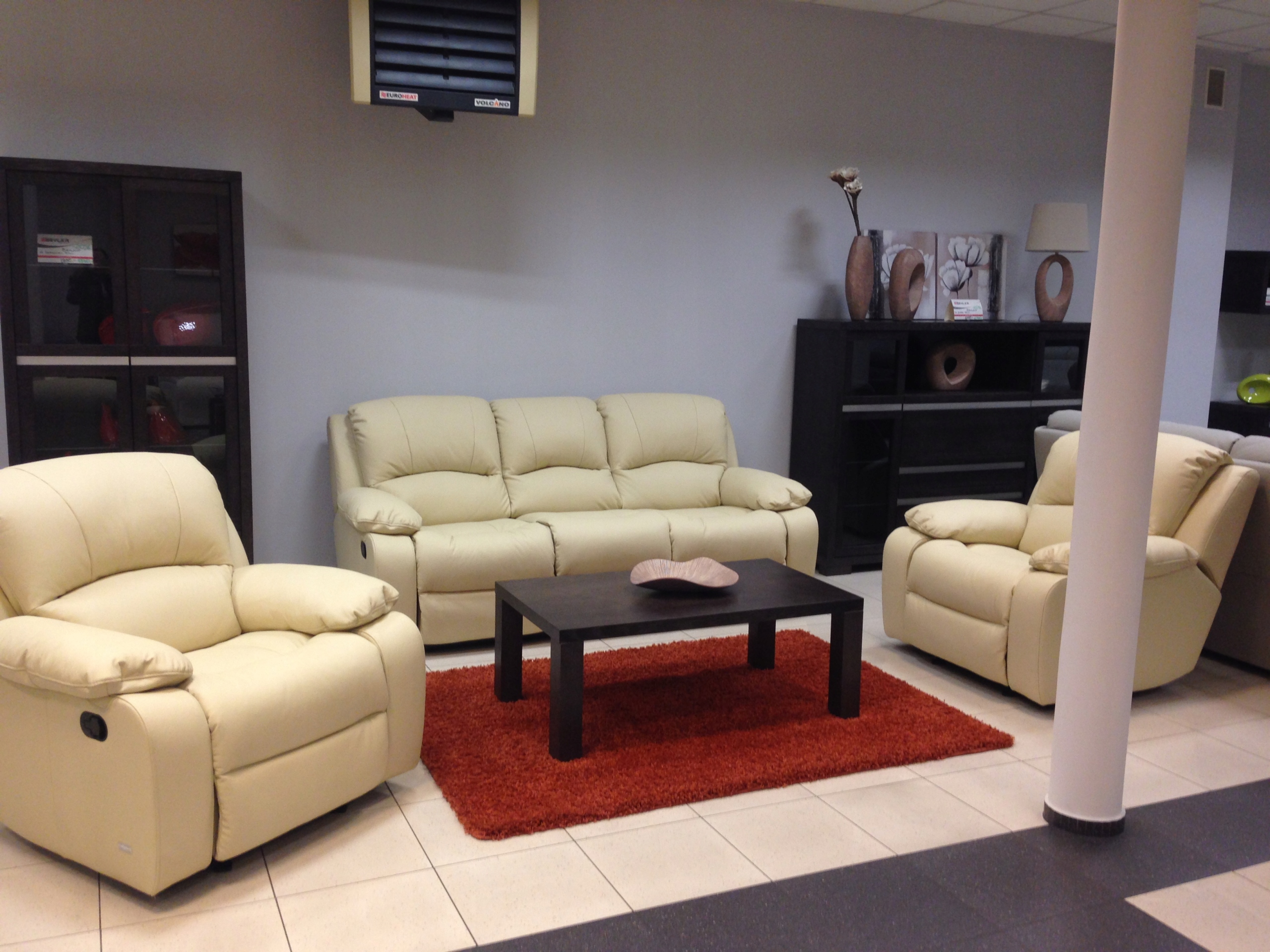 Меблі оббиті (екологічною) шкірою, також із зворотного боку, тому ви можете розмістити їх у будь-якому місці кімнати.