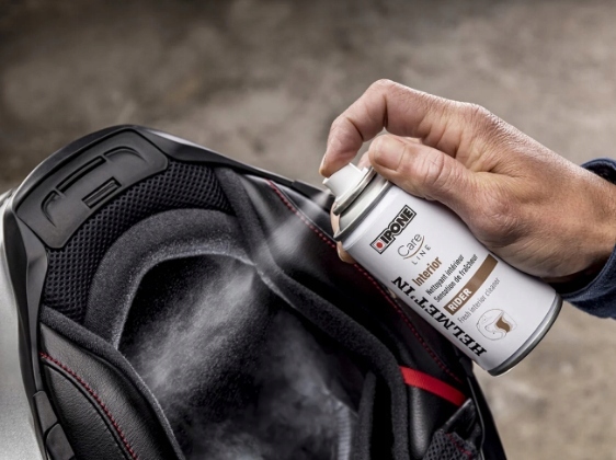 - 1x Helmet'In спрей 150 мл - Для очищення внутрішньої частини шолома, т.зв. «підкладка» від поту та бруду.