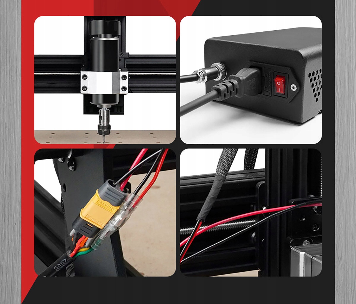 【 Набір шпинделя з ЧПК 】 1 x шпиндельний двигун із повітряним охолодженням потужністю 500 Вт, 1 x вбудований блок керування регулятором швидкості з , 1 x монтажний кронштейн x 52 мм, 1 x монтажний вузол, 1 x шнур живлення, 1 x кабель, під’єднаний до двигуна, 2 x гайковий ключ, 10 x гвинтів.