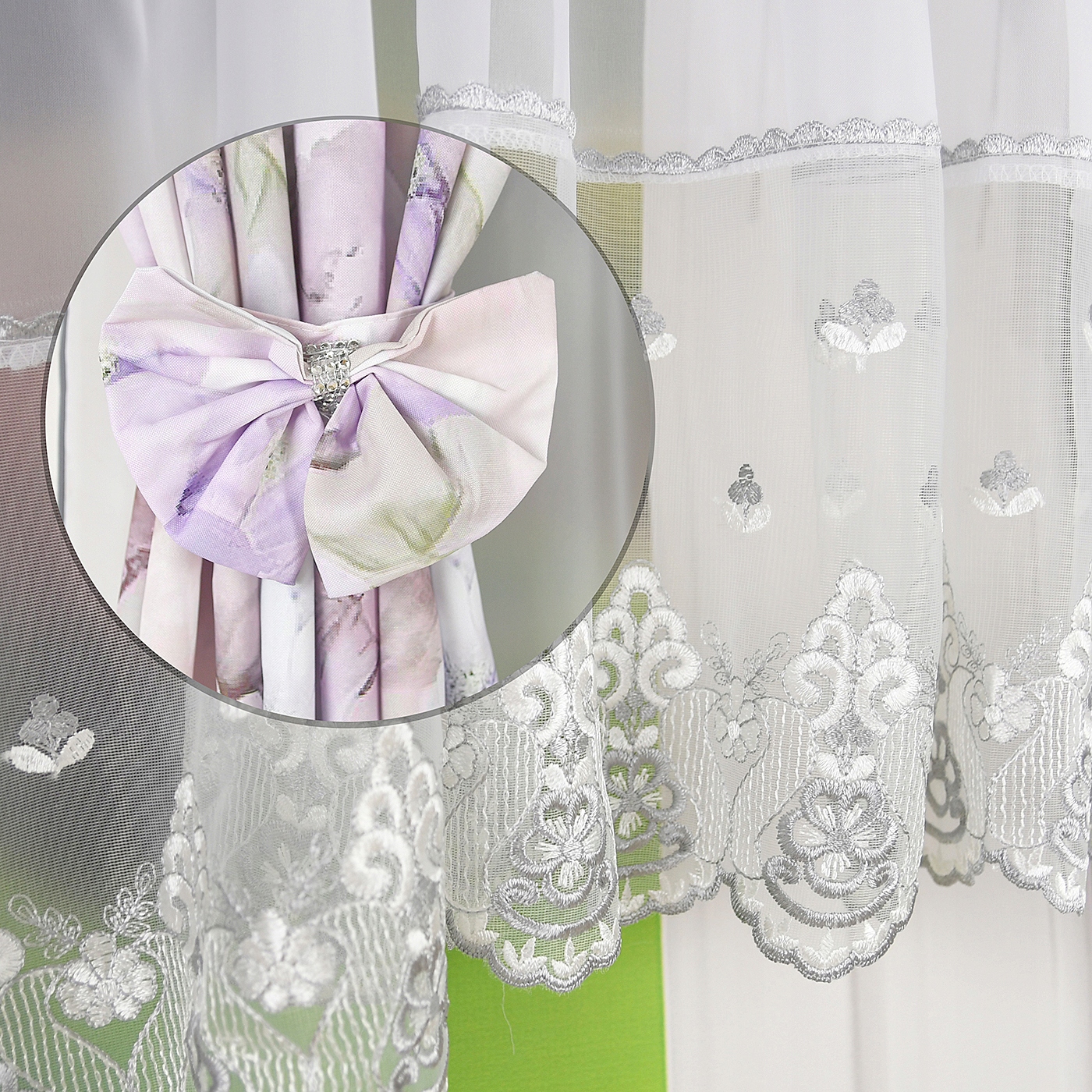До штор входять дві стрічки з бантами, завдяки яким ви можете скріпити штори в кокони.