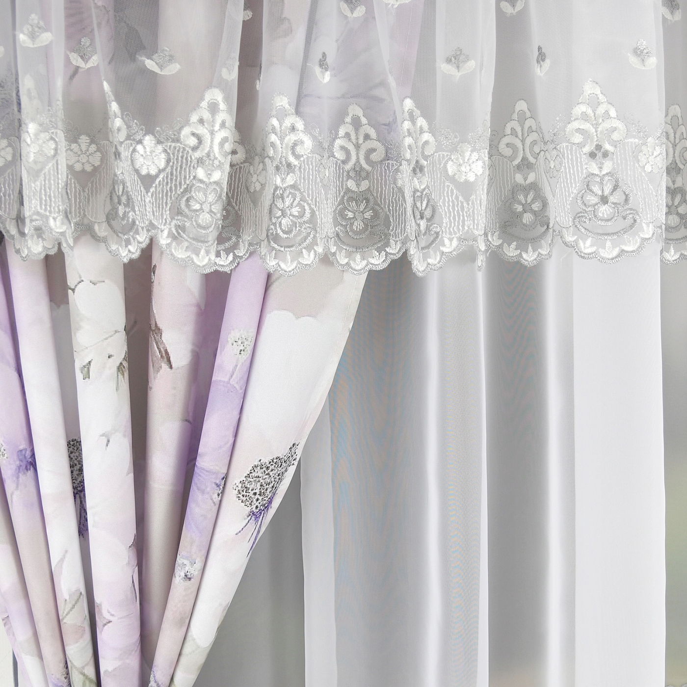 КОМПЛЕКТ ШТОР З КАРДИНОЮ ВУАЛЬ ДЕКОРИРОВАНО ВИШИТИМ ГІПЮРОМ AMMINGETTE 400х150см