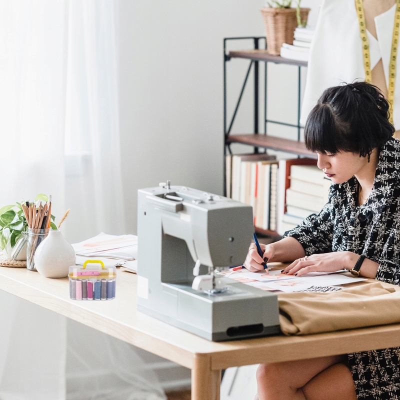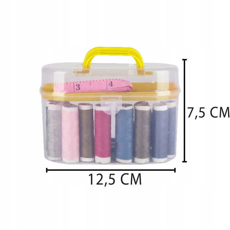 Набір для шиття в елегантній коробці. Ця річ ідеально підходить для швачок і людей, які займаються шиттям щодня. Він містить усі основні речі, необхідні для пошиття чи ремонту одягу. Коробка складається з двох частин - контейнера і знімного шару всередині. З ним ви можете пришити ґудзики до різного одягу тощо.