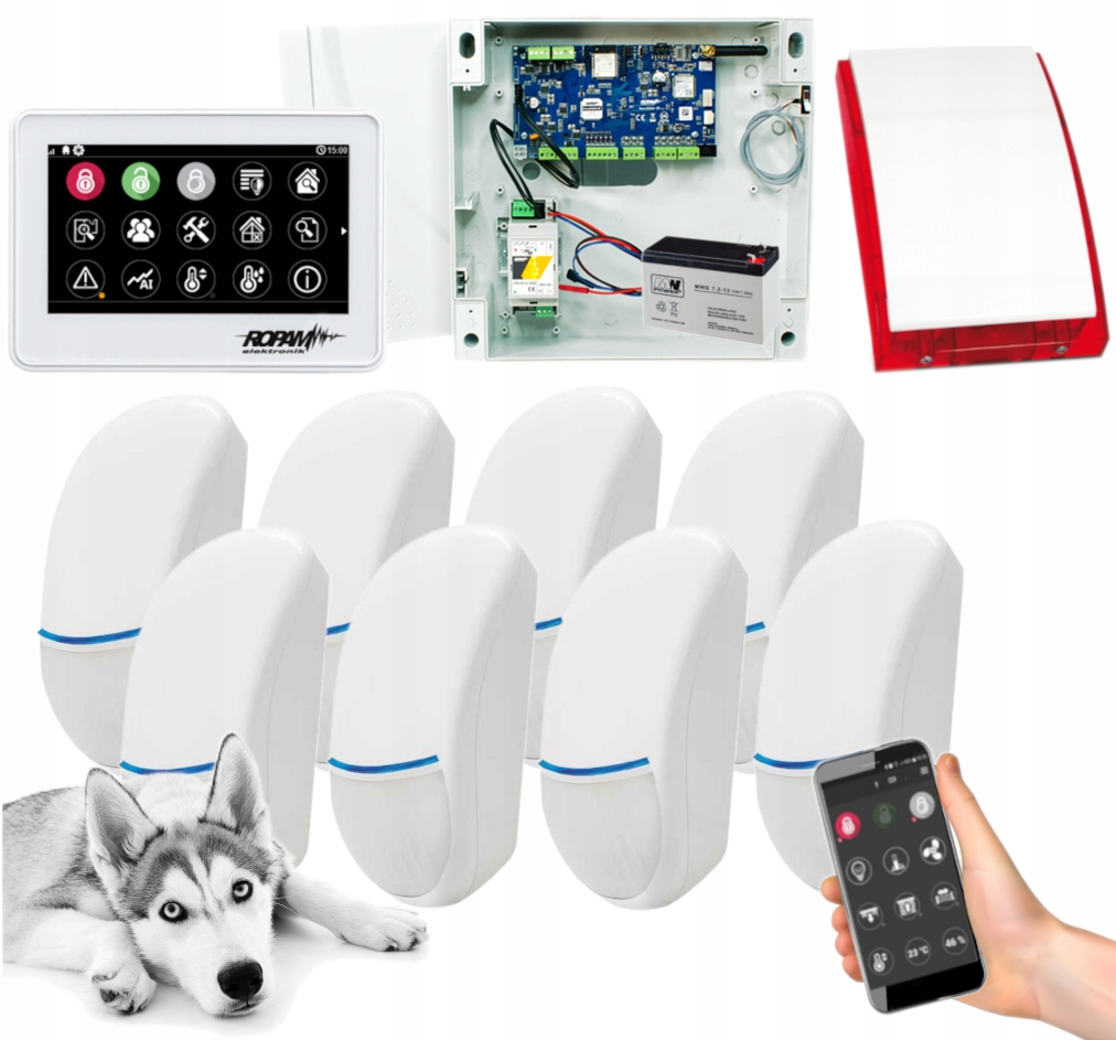 Система сигналізації Ropam NeoGSM-IP з вбудованим модулем GSM, WiFi та 8 детекторами BINGO Plus