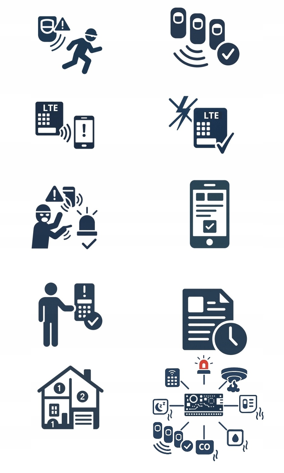 Удосконалена сигналізаційна панель із вбудованим модулем LTE, призначена для ефективного захисту будинків, квартир, офісів та об'єктів, віддалених від постійної інфраструктури Інтернету. Завдяки мобільному зв'язку система працює незалежно від мережі LAN - забезпечує дистанційне керування, SMS-повідомлення, CLIP і доступ до програми PERFECTA CONTROL за будь-яких умов. Користувач отримує повний функціонал професійної системи - автоматичні розклади дій, розширену історію подій і надійні повідомлення. Це ідеальне рішення для тих, хто очікує гнучкості, стабільності роботи та максимальної незалежності - без необхідності кабельного Інтернету.