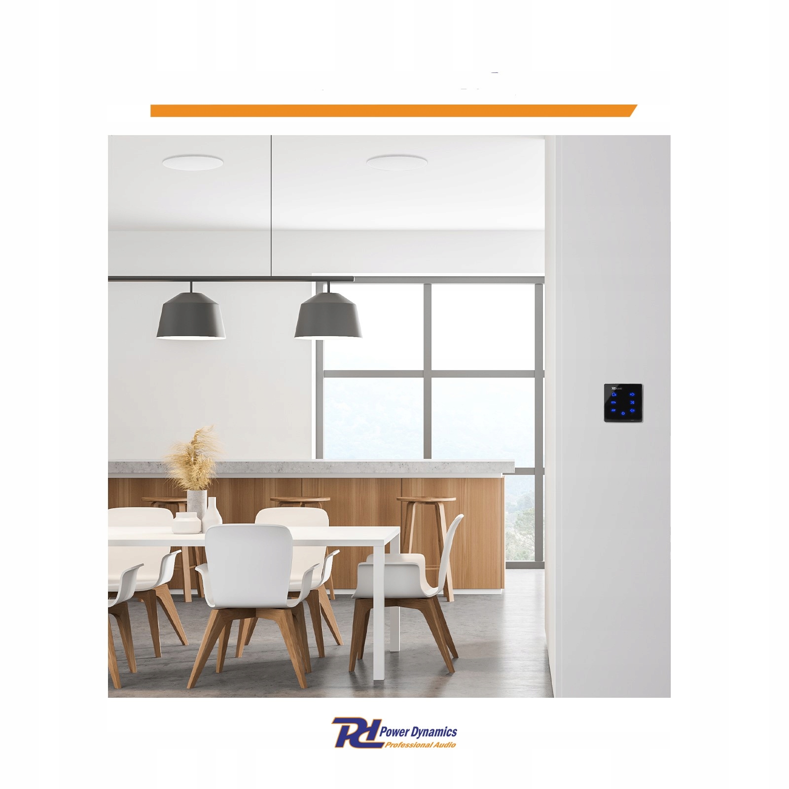 складається з музичної системи (в стіну) з вбудованим підсилювачем, музичного плеєра та низькопрофільних стельових динаміків із чудовим звуком HiFi. Витончене та елегантне покриття сенсорної панелі забезпечує мінімалістичний вигляд, завдяки якому ваш звук буде чутним і непомітним.