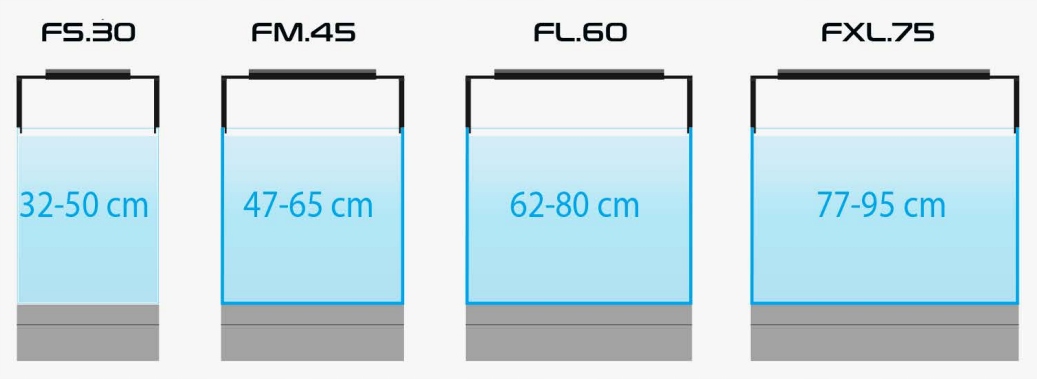 Кожна лампа доступна в 5 розмірах: FL.60, FM.45, FS.30, FXL.75, FXS.15