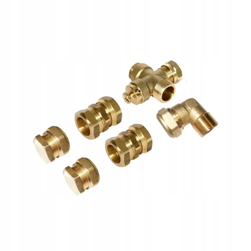 Набір оснащений системою латунних компресійних з'єднувачів, що забезпечує ефективне та надійне з'єднання колекторів і труб.