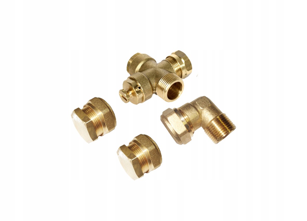 Набір оснащений системою латунних компресійних з'єднувачів, що забезпечує ефективне та надійне з'єднання колекторів і труб.