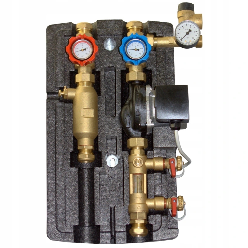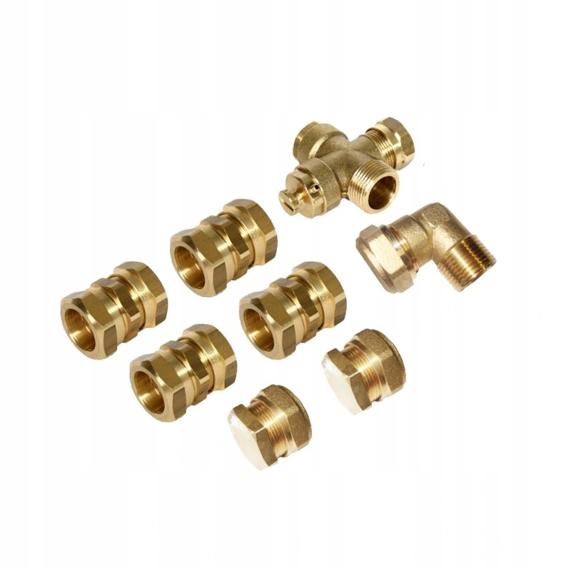 Набір оснащений системою латунних компресійних з'єднувачів, що забезпечує ефективне та надійне з'єднання колекторів і труб.