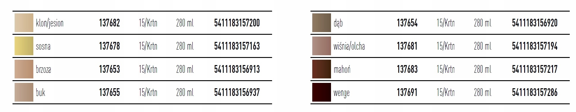Герметик на основі акрилової дисперсії - в кольорах, що відповідають найпопулярнішим породам паркету.