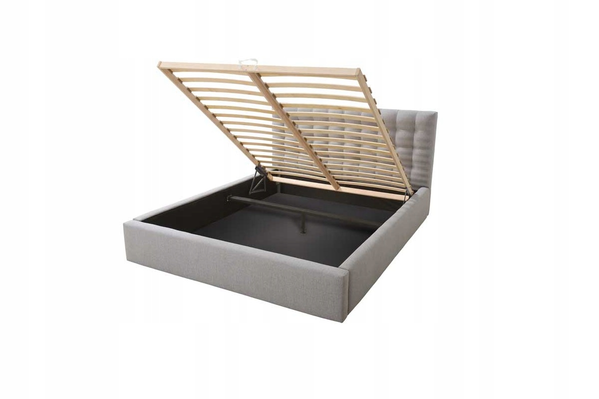 М'яке ліжко з товстої, міцної та легкої у догляді екошкіри, з міцним каркасом із буковими ламелями, розташованими на відстані не більше 2 см одна від одної, що забезпечує винятковий комфорт під час сну. Місце для зберігання ліжка займає всю поверхню, яку можна використовувати як зручне, легкодоступне місце для зберігання.