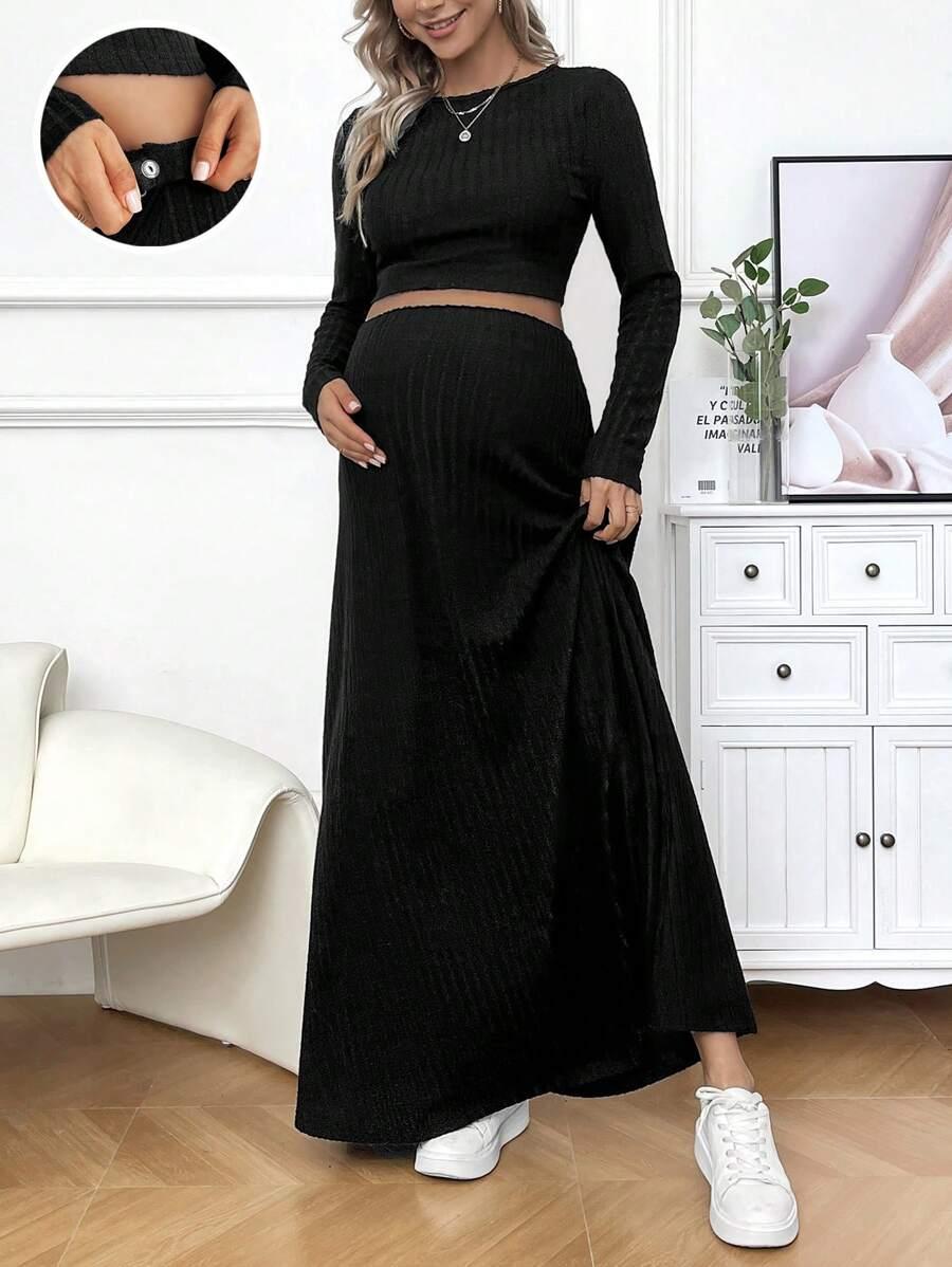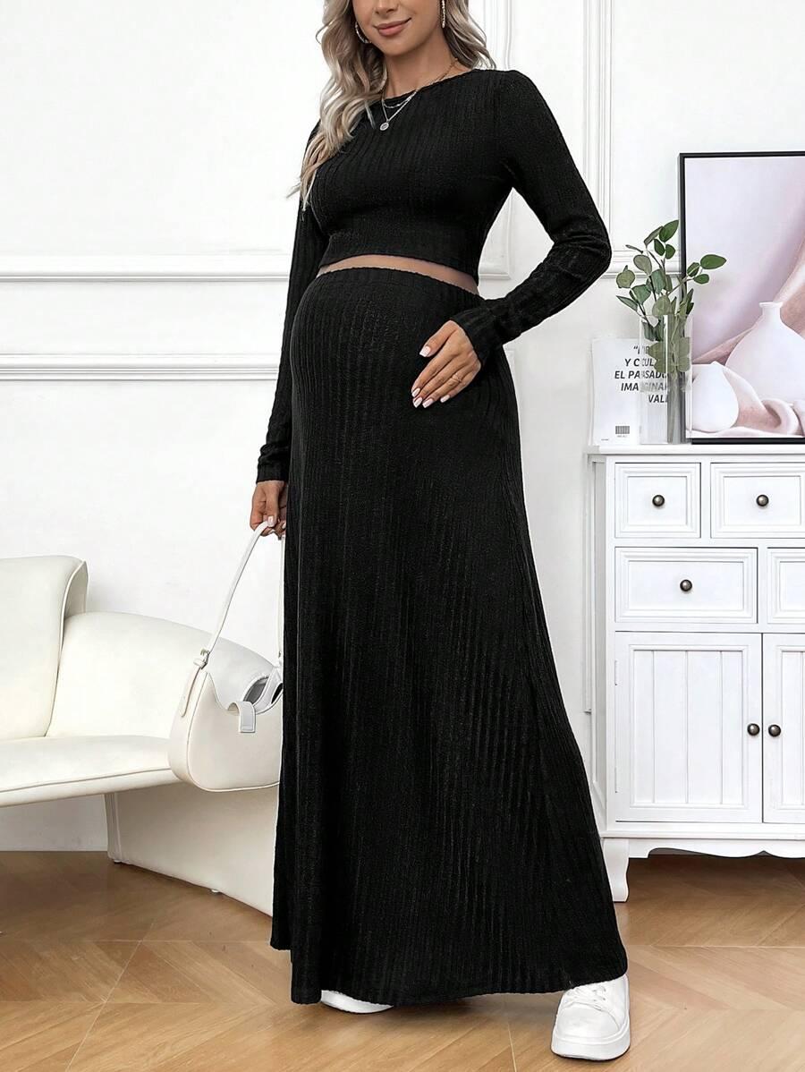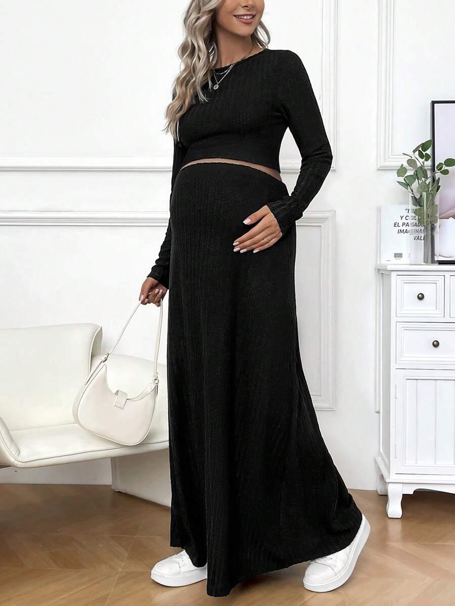 КОМПЛЕКТ СПІДНИЦІ В РУБРИЧКУ ДЛЯ ВАГІТНОСТІ SHEIN BLACK