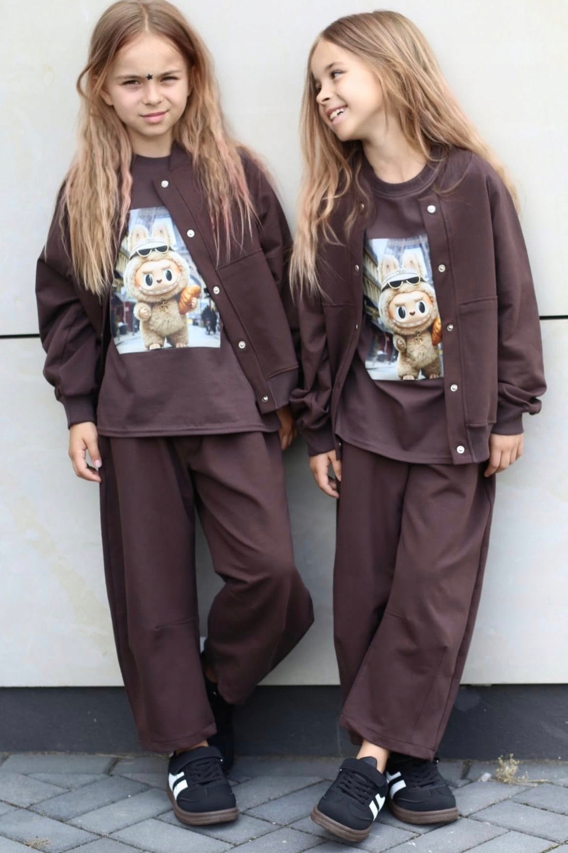 Спортивний костюм LABUBU шоколадного кольору, складається з двох частин: світшот і штани.