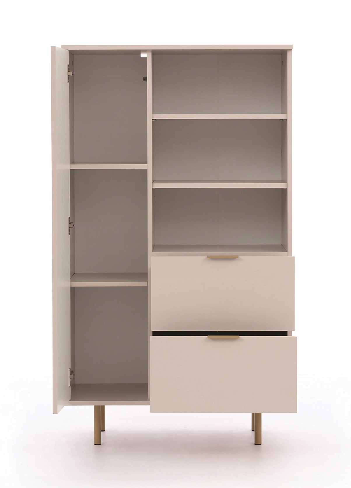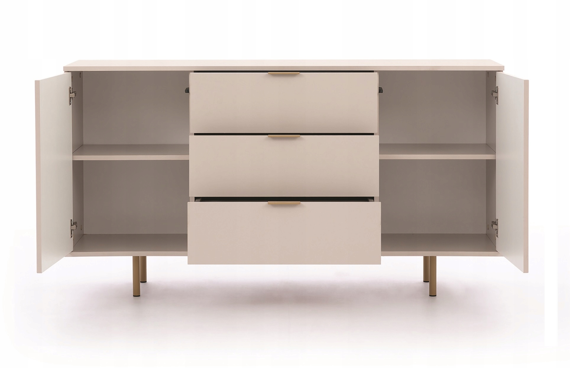 Колекція NEVOY доступна в двох кольорах: насиченому, модному чорному, який приверне увагу тих, хто любить унікальні інтер'єри, або заспокійливому кашеміровому , яка радує своїм тонким неповторним стилем. Рифлені МДФ дверцята та металеві ручки та ніжки золотисто-бежевого кольору додають меблям сучасності та оригінальності.