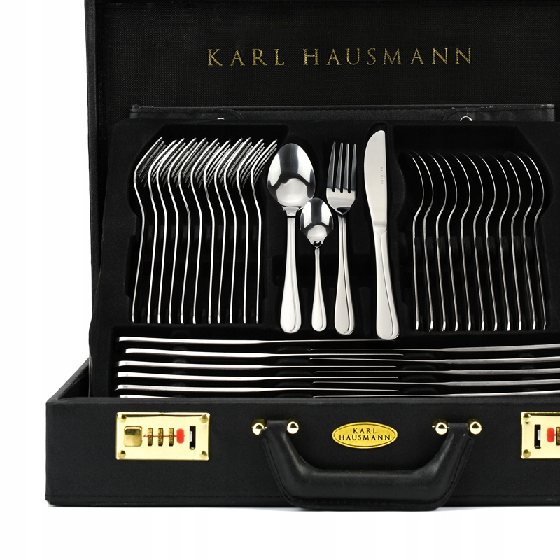 з високоякісноїнержавіючої сталі. Набір столових приборів на 12 персон зробить Ваш стіл надзвичайно стильним та елегантним. Все це упаковано в елегантну валізу з екологічної шкіри, яка захищає столові прибори від зовнішніх факторів навколишнього середовища, що значно полегшує зберігання та транспортування всіх елементів набору.