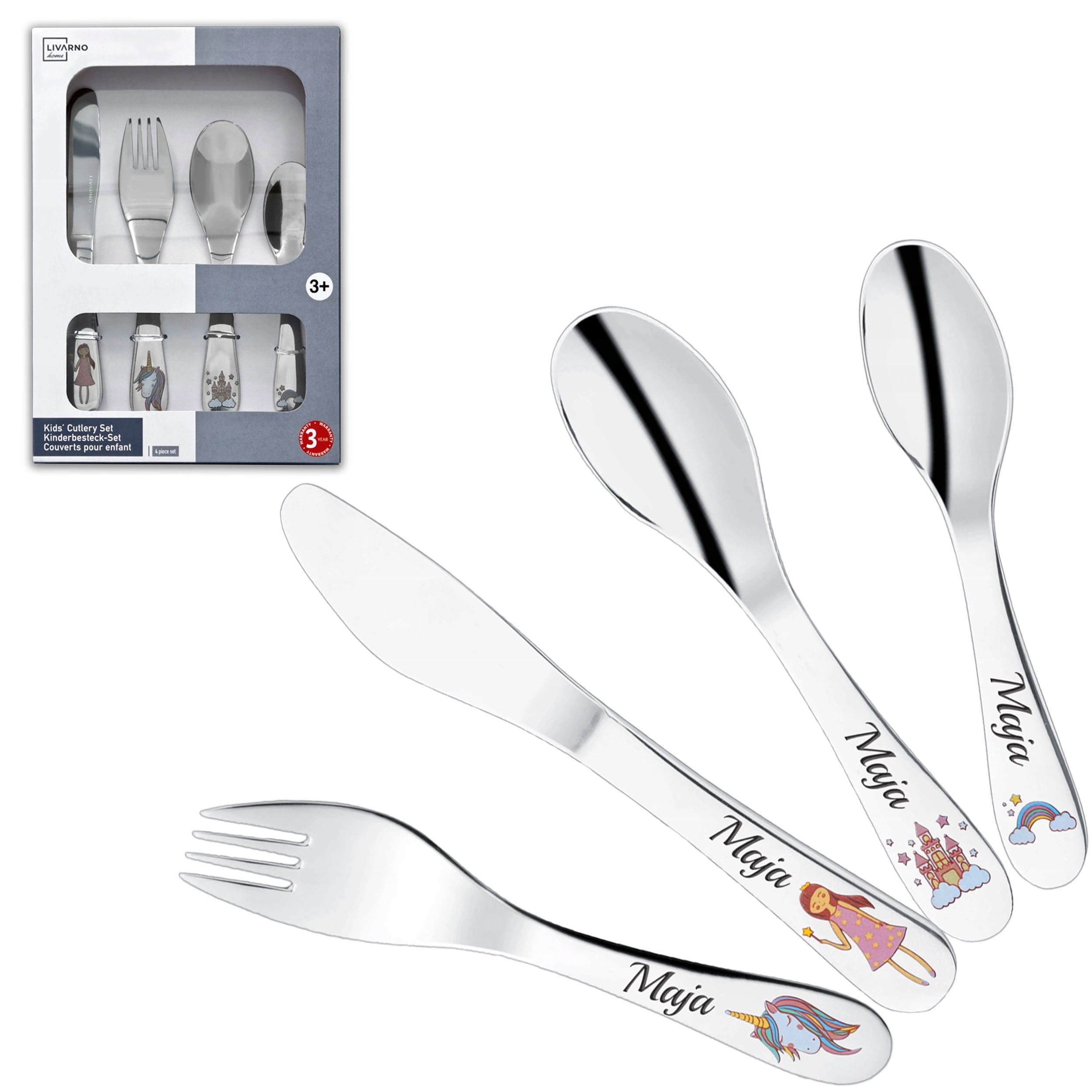 Комплект столових приладів для дітей Єдиноріг Гравер Подарунок на Хрещення Рочок