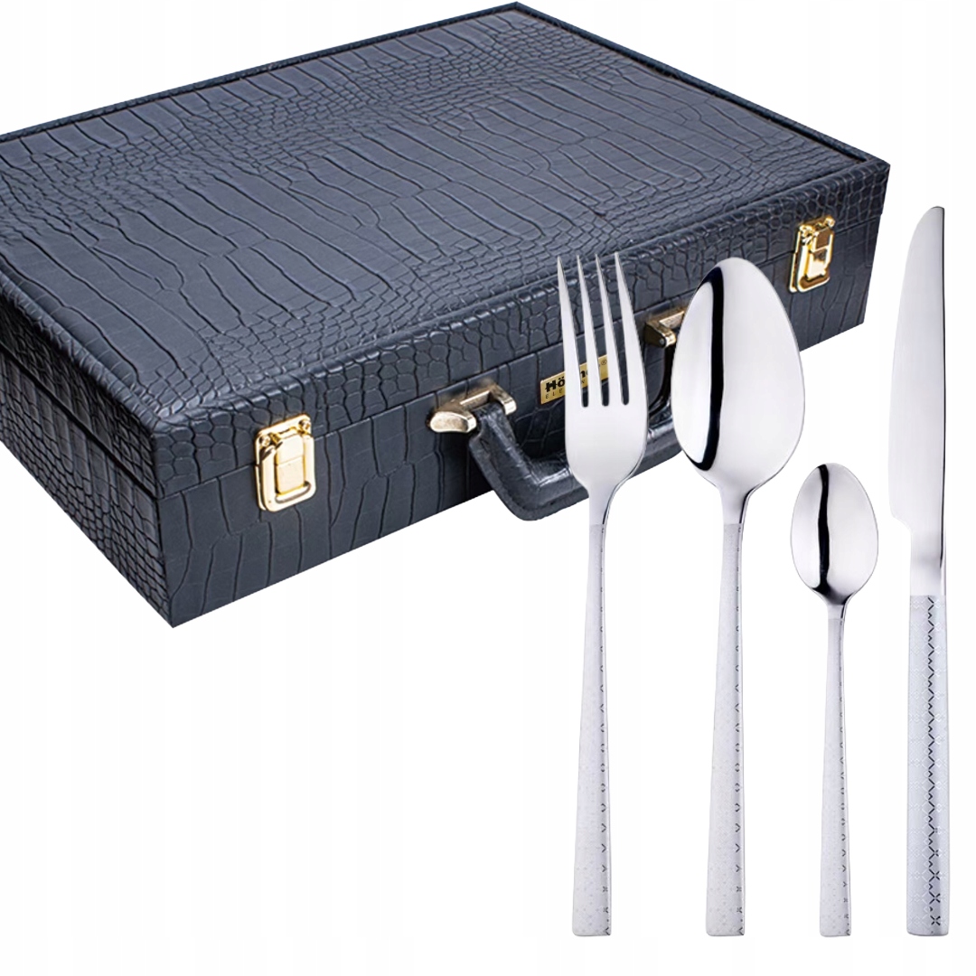 Приготуйтеся бути враженими! Цей набір столових приборів - остання прем'єра в нашій колекції - унікальний дизайн, створений для найвибагливіших клієнтів. Його унікальна естетика та майстерна робота роблять його подарунком, який одразу впадає в очі та символізує розкіш. Ідеально підійде до Різдва, шикарного весілля, круглої річниці або як престижний подарунок на нову квартиру. Це поєднання практичності та чистої, сучасної краси, яка прослужить одержувачу багато років. Подаруйте щось справді ексклюзивне.