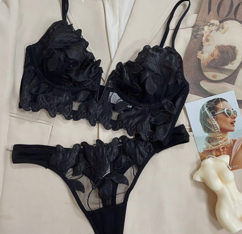 Комплект білизни: бюстгальтер (bralet) + стрінги. Набір чудово оброблений. Бюстгальтер можна носити як бралет.