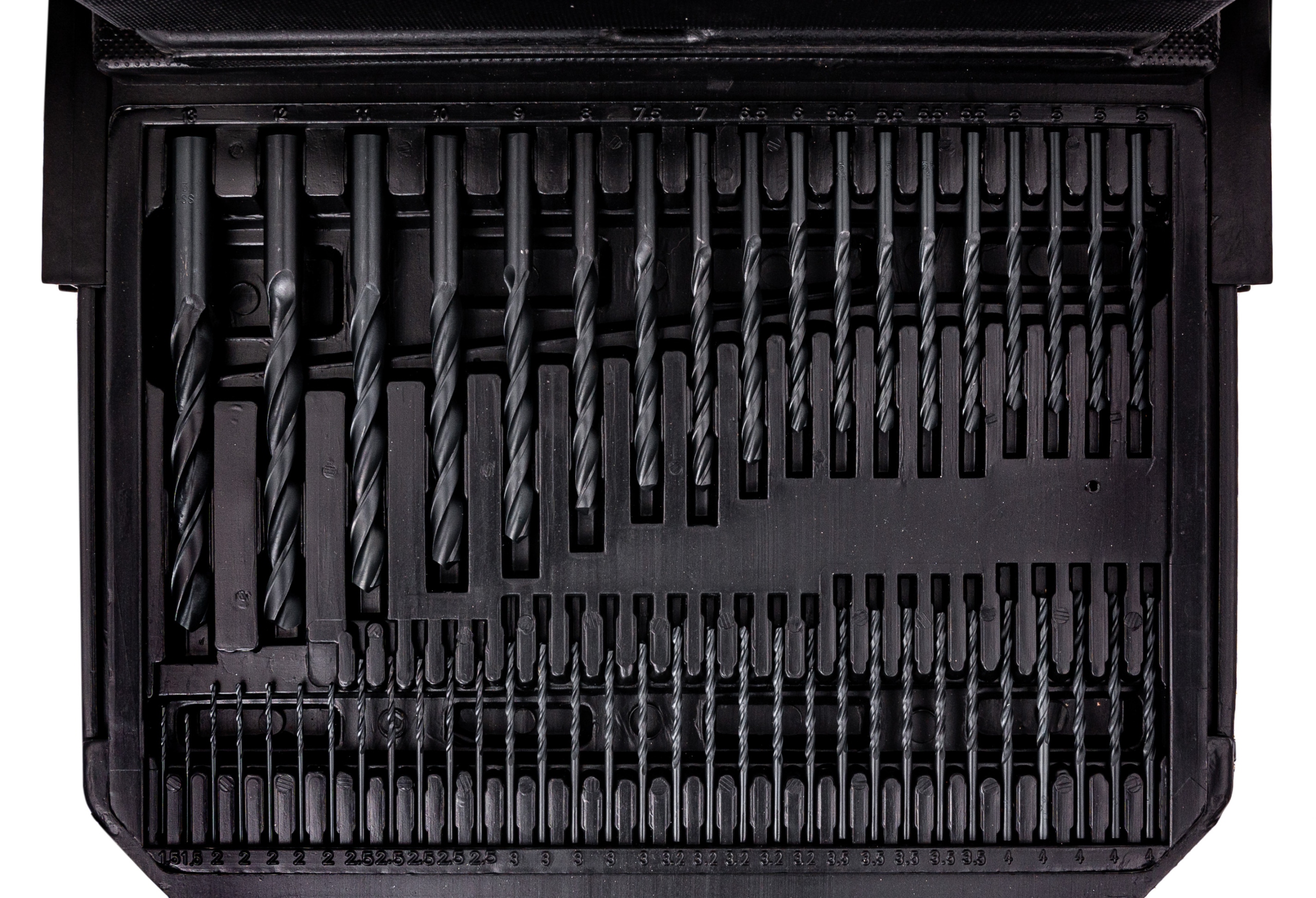 У функціональній валізі ви знайдете 5 для бетону, металу та деревини, включаючи дірки та пір'яні свердла. Лоток, що містить різні типи шматочків для викруток. p>